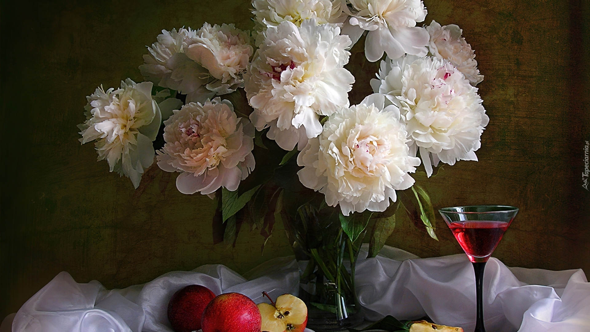 Edytor tapety: Różowe, Piwonie, Jabłka, Wino