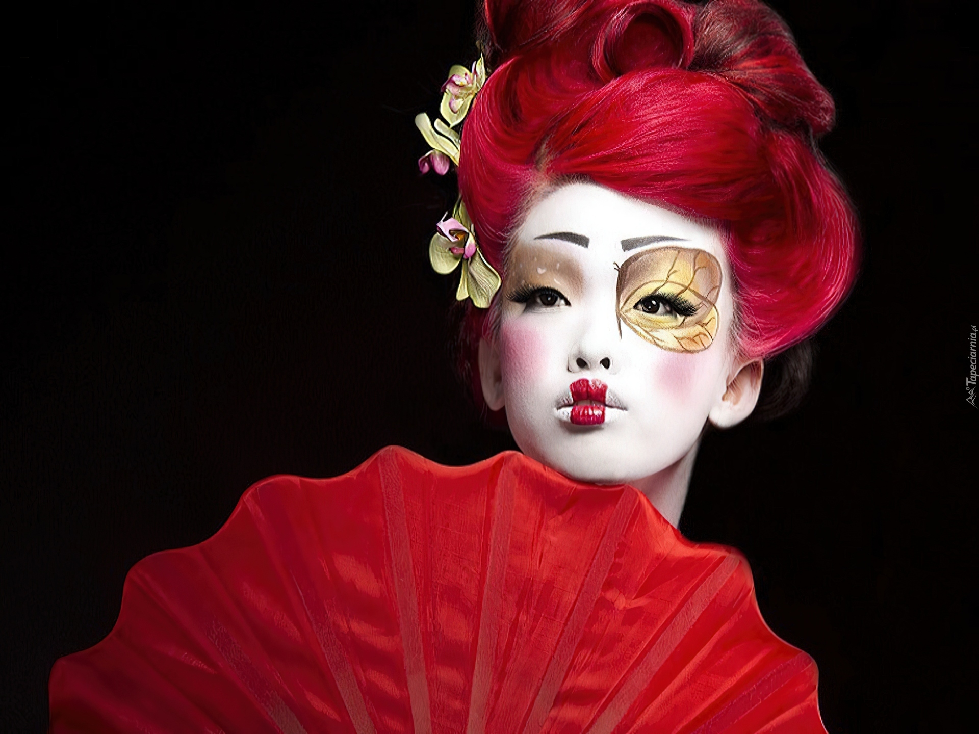 Edytor tapety: Kobieta, Makijaż, Kwiaty, Wachlarz