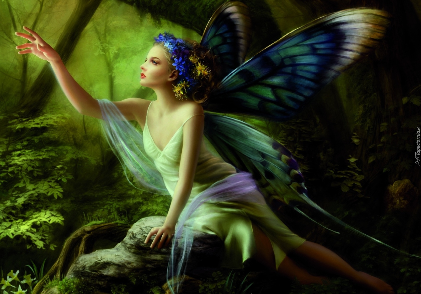 Edytor tapety: Kobieta, Motyl, Wianek, Las