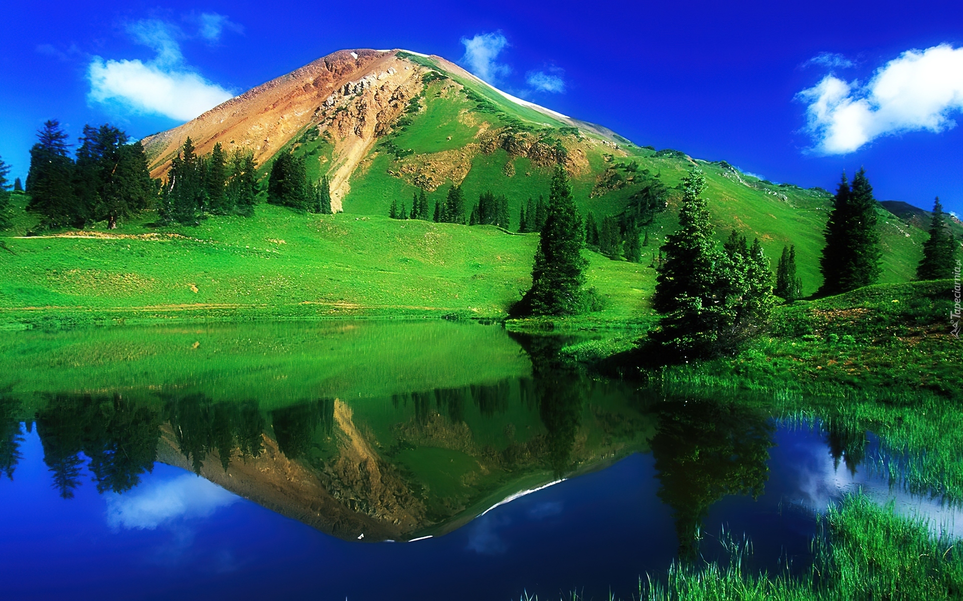 Edytor tapety: Góra, Jezioro, Drzewa, Iglaste