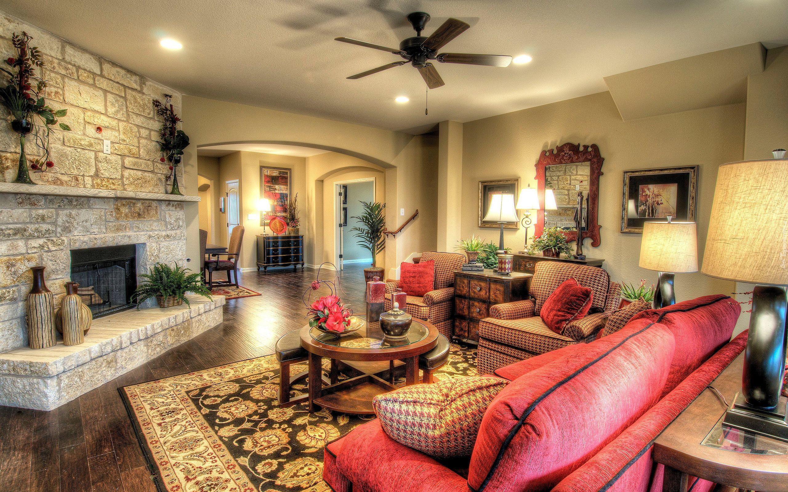Edytor tapety: Salon, Kominek, Kanapa, Stolik, Lampy, Wazony