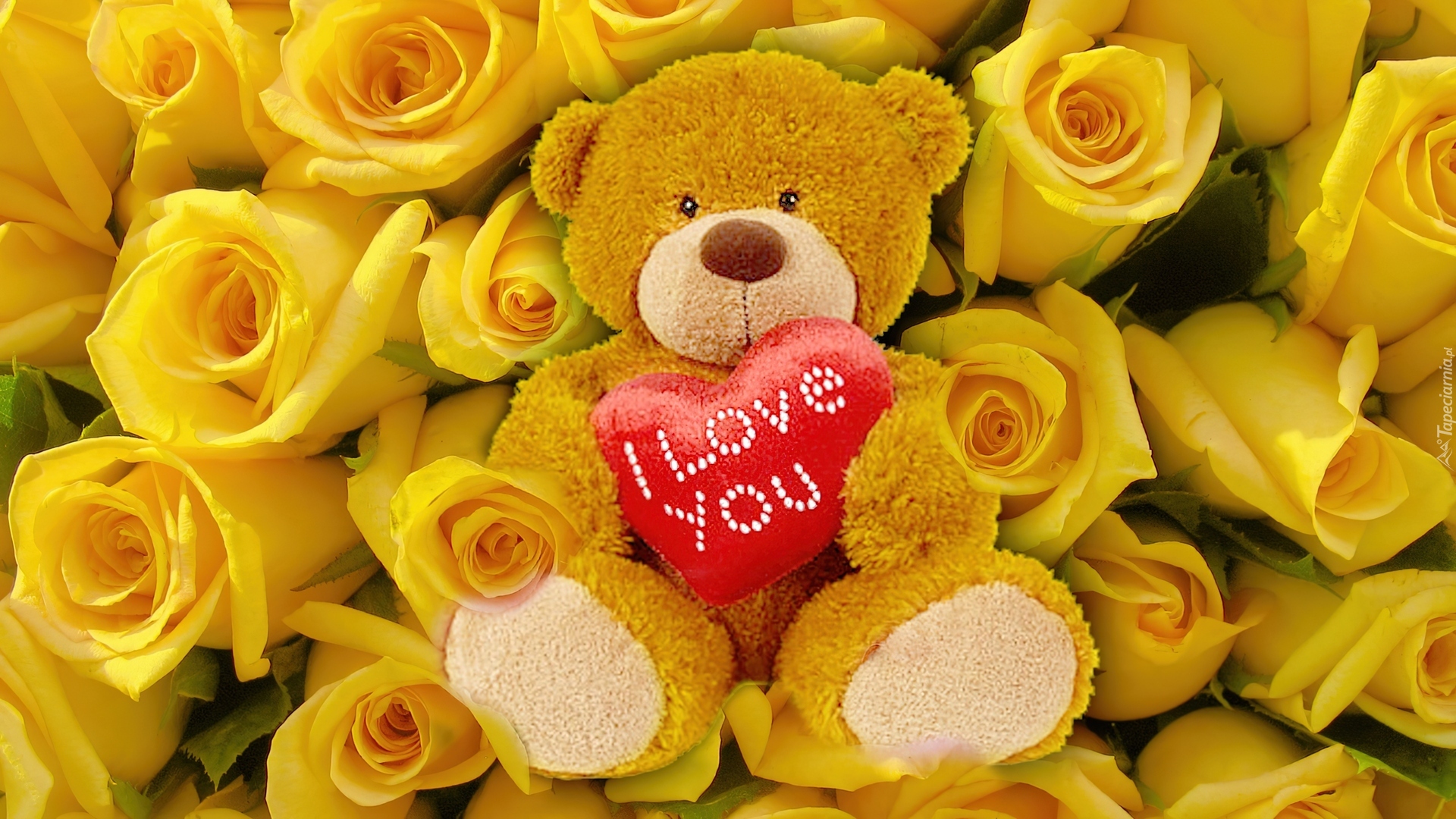 Edytor tapety: Żółte, Róże, Miś, Serduszko