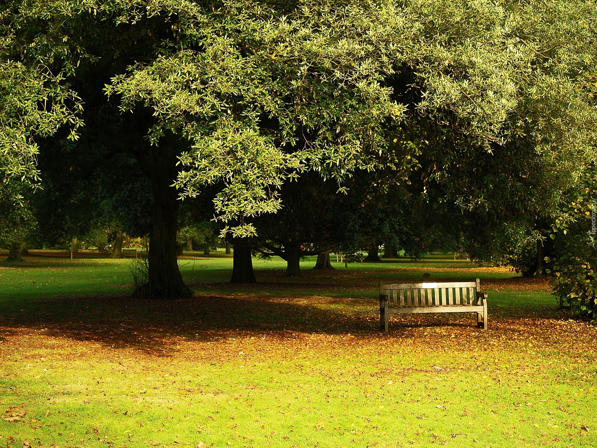 Edytor tapety: Drzewa, Ławka, Liście
