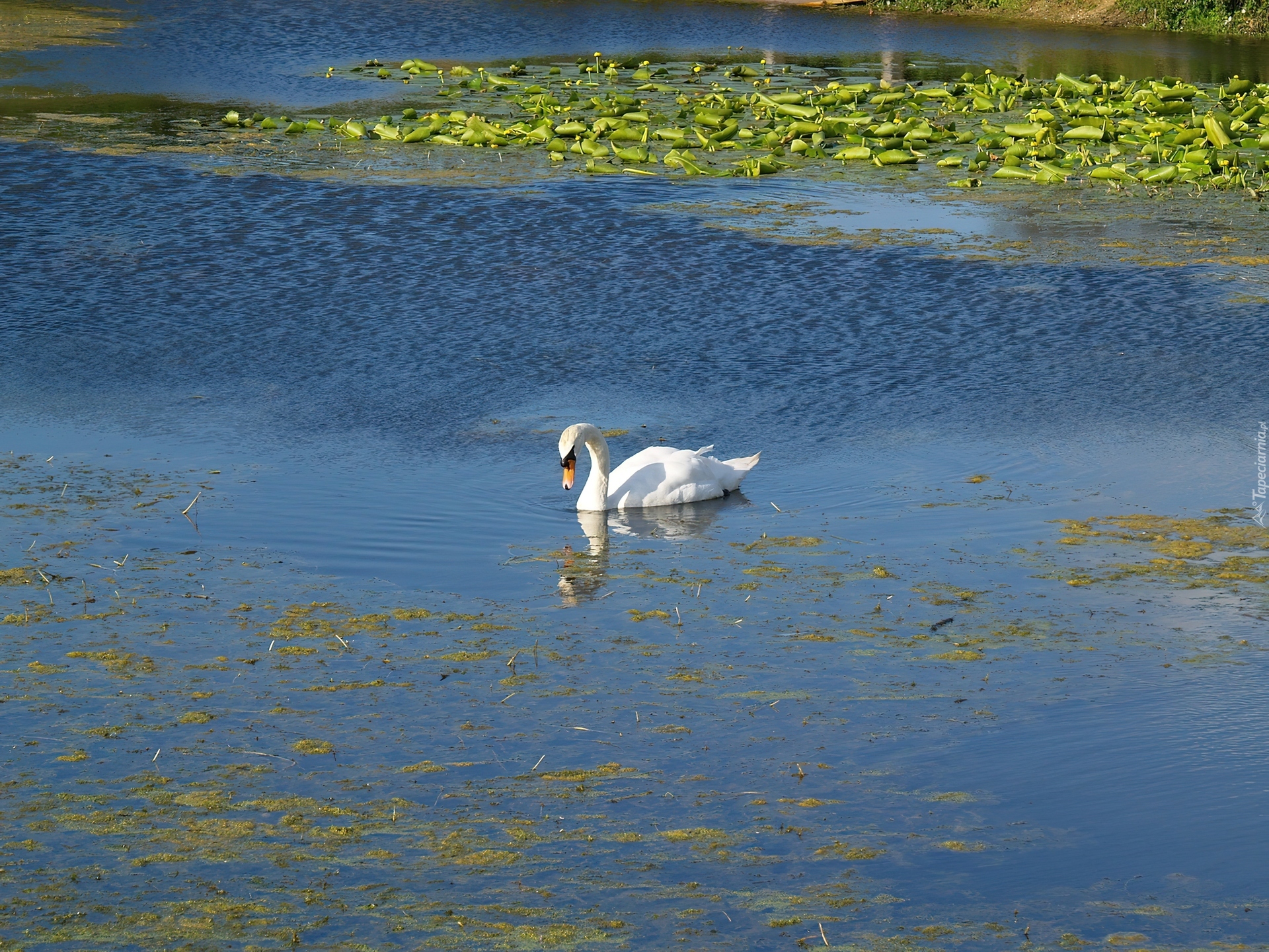 Edytor tapety: Łabędź, Woda, Lilie