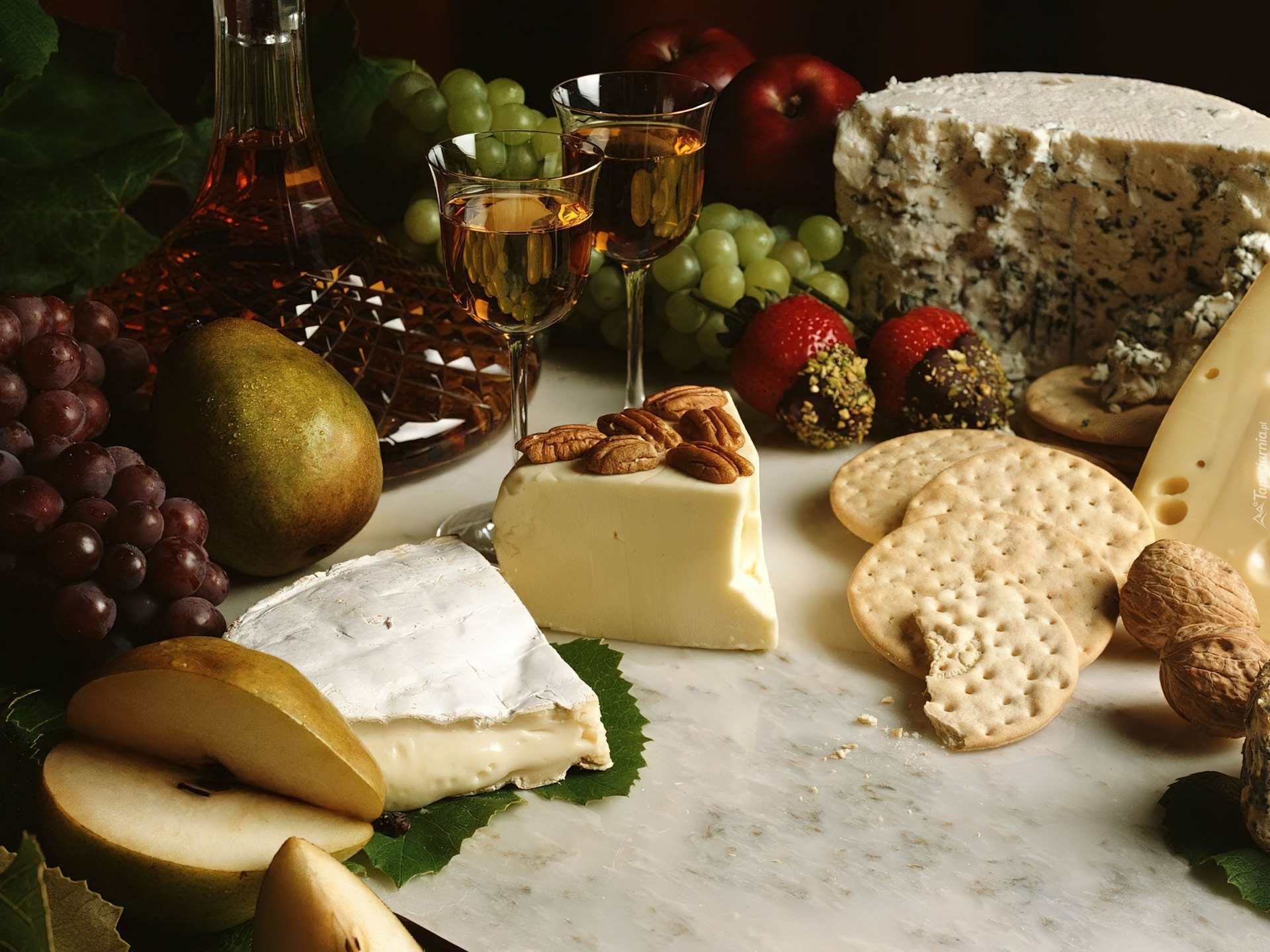 Edytor tapety: Różne, Sery, Wino, Kieliszki, Owoce