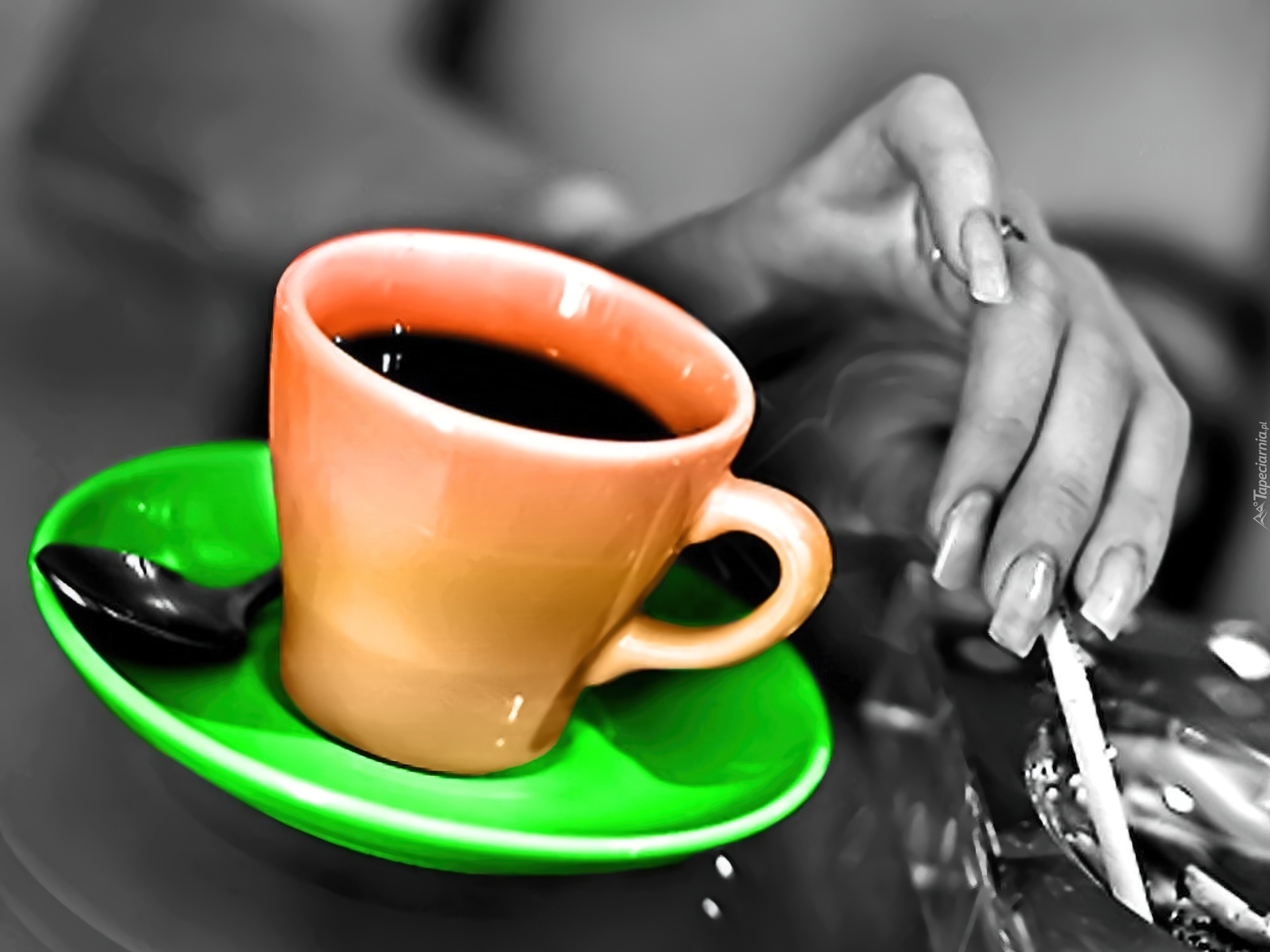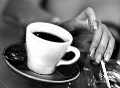 Edytor tapety: Kawa, Filiżanka, Dłoń, Papieros