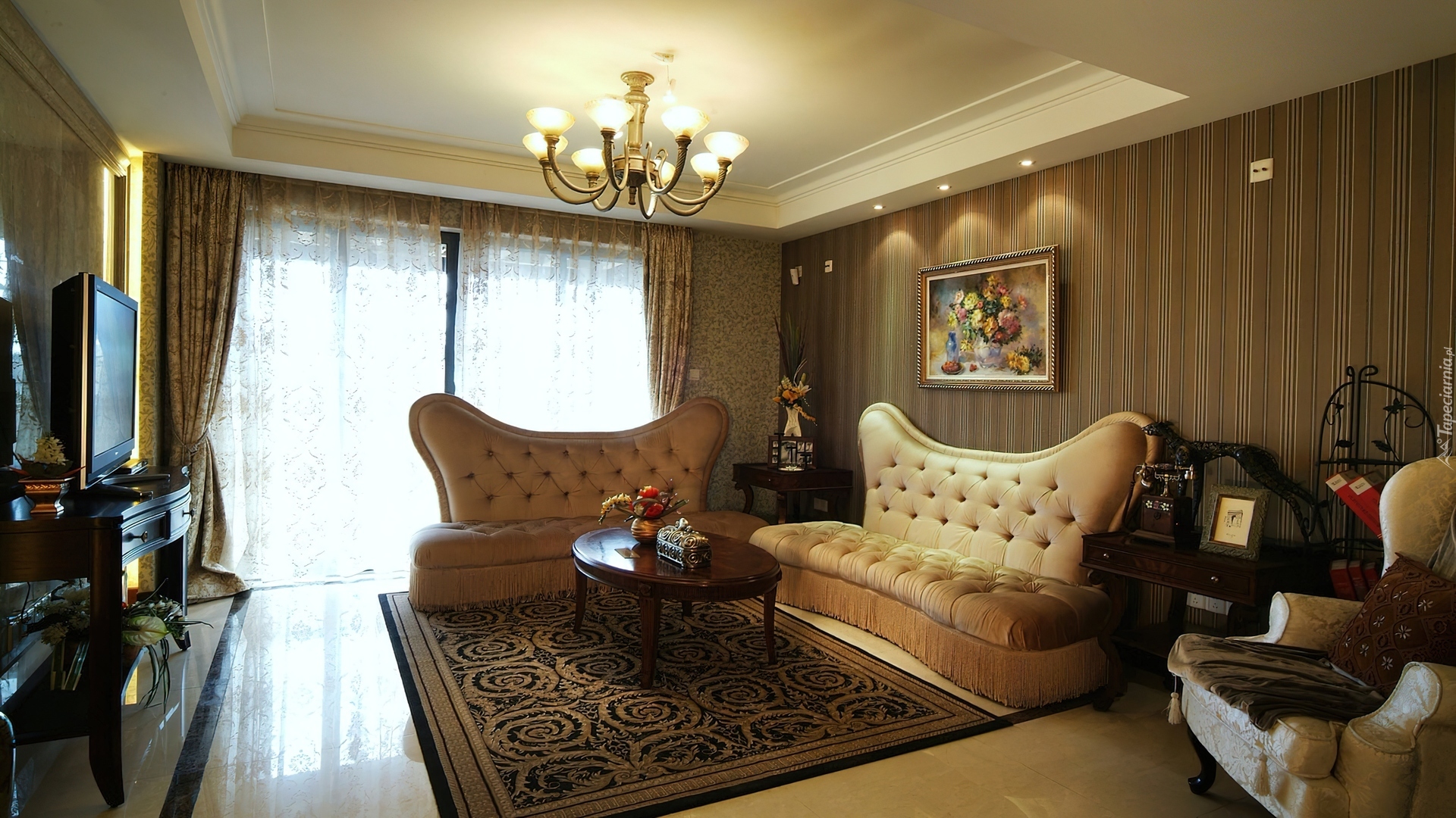 Edytor tapety: Stonowany, Salon, Dywan, Sofy