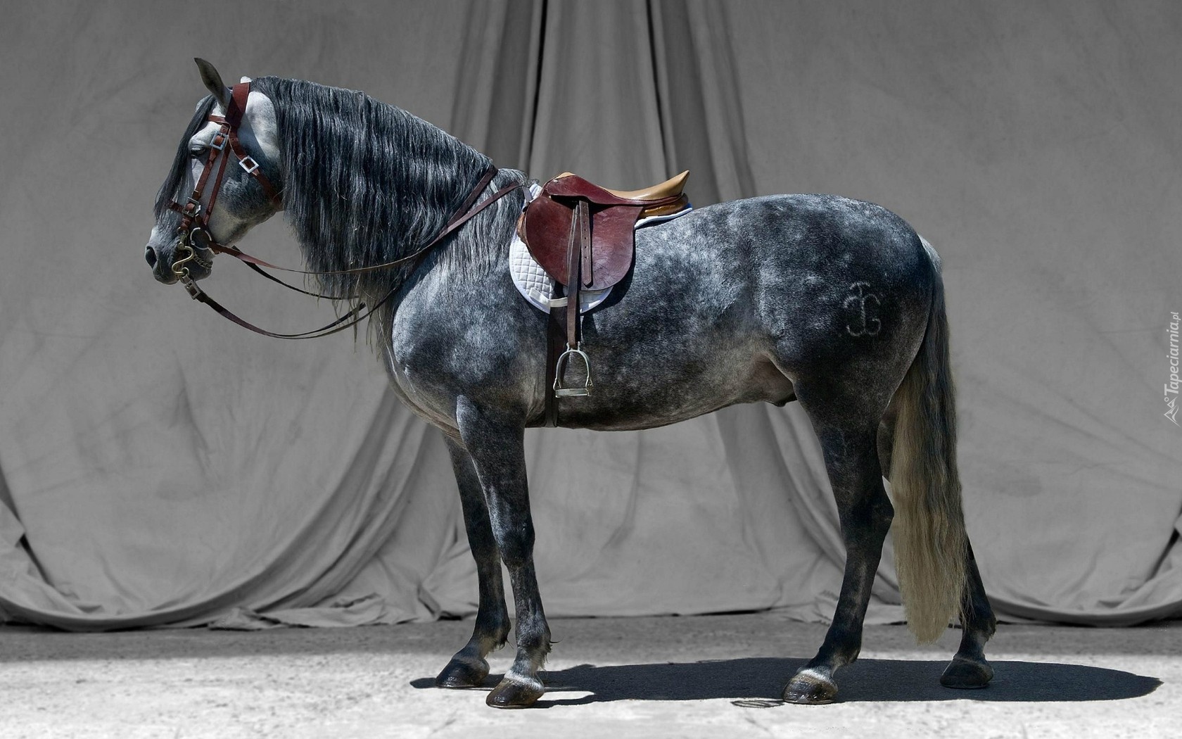 Edytor tapety: Siwy, Koń, Grzywa, Siodło