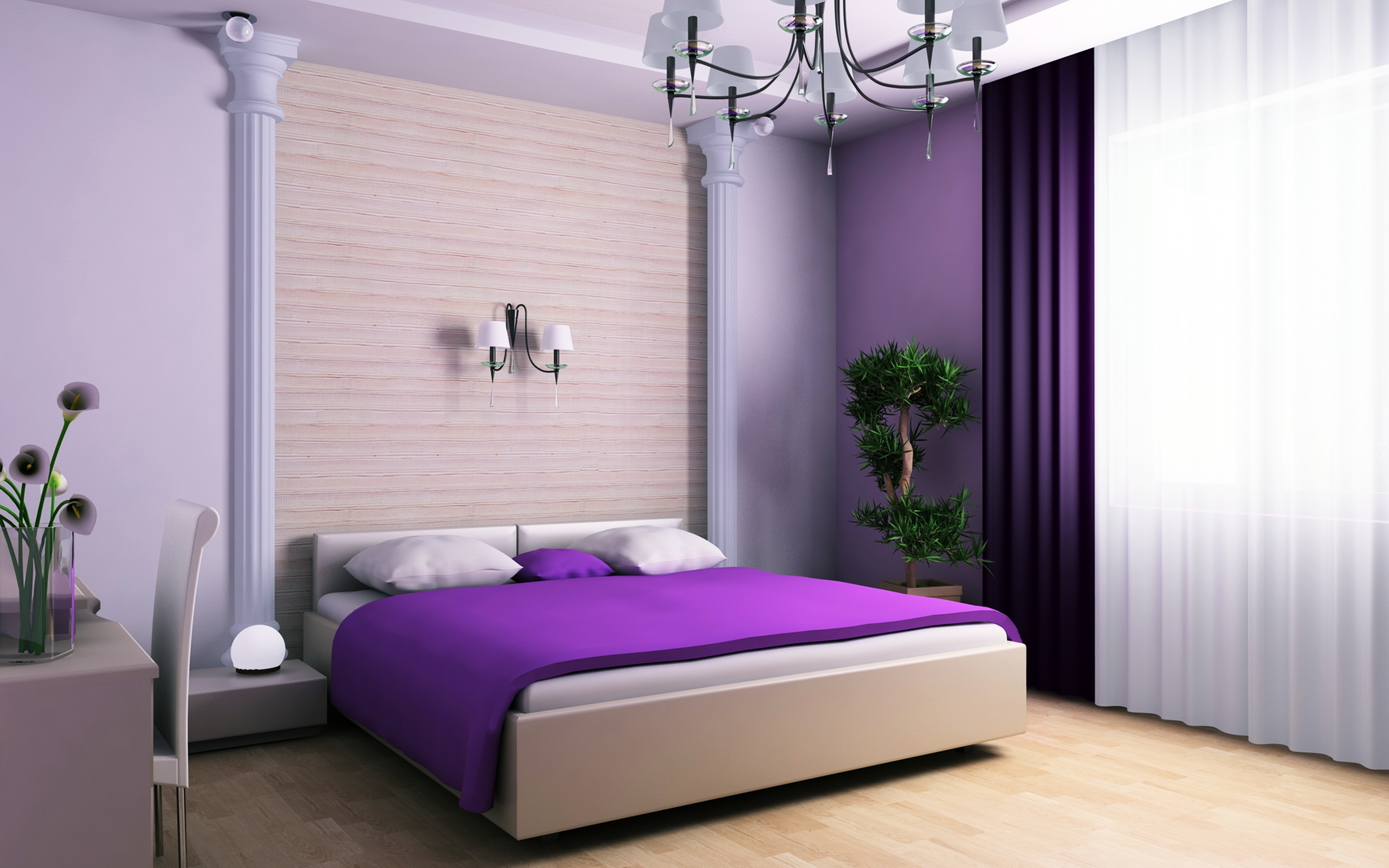 Edytor tapety: Sypialnia, Łóżko, Fioletowa, Narzuta