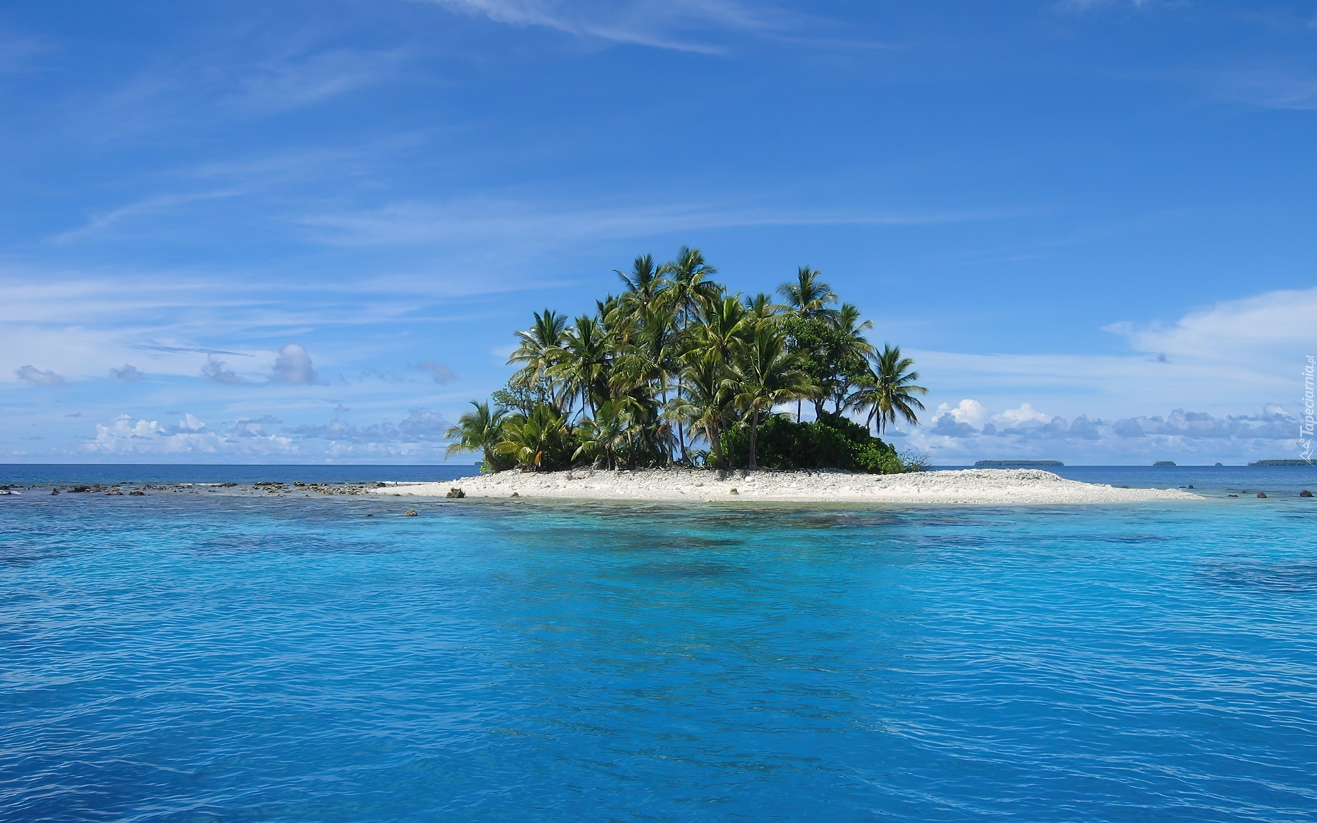 Edytor tapety: Wysepka, Palmy, Błękit, Morza