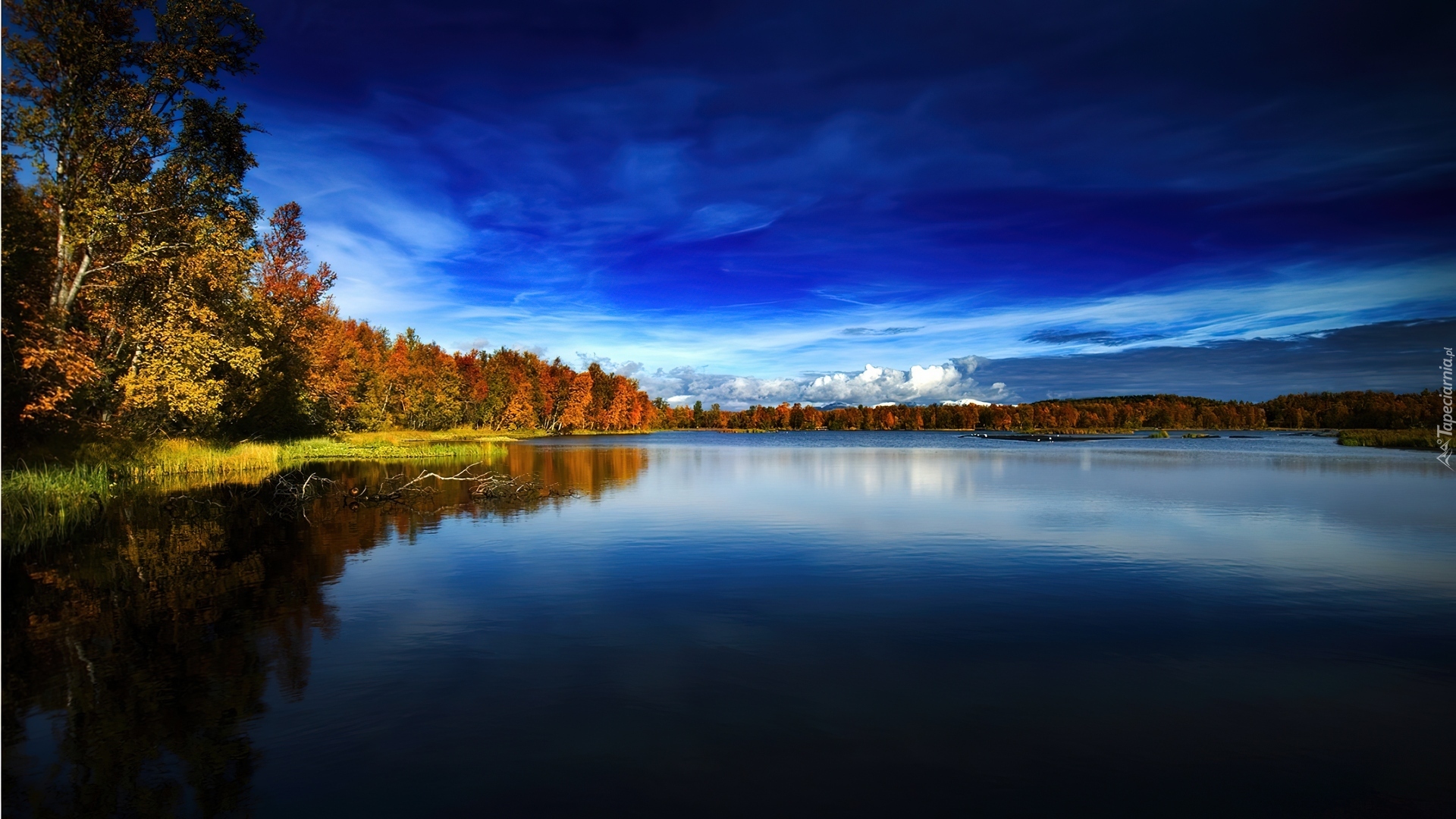 Edytor tapety: Norwegia, Jezioro, Porośnięte, Lasem, Brzegi