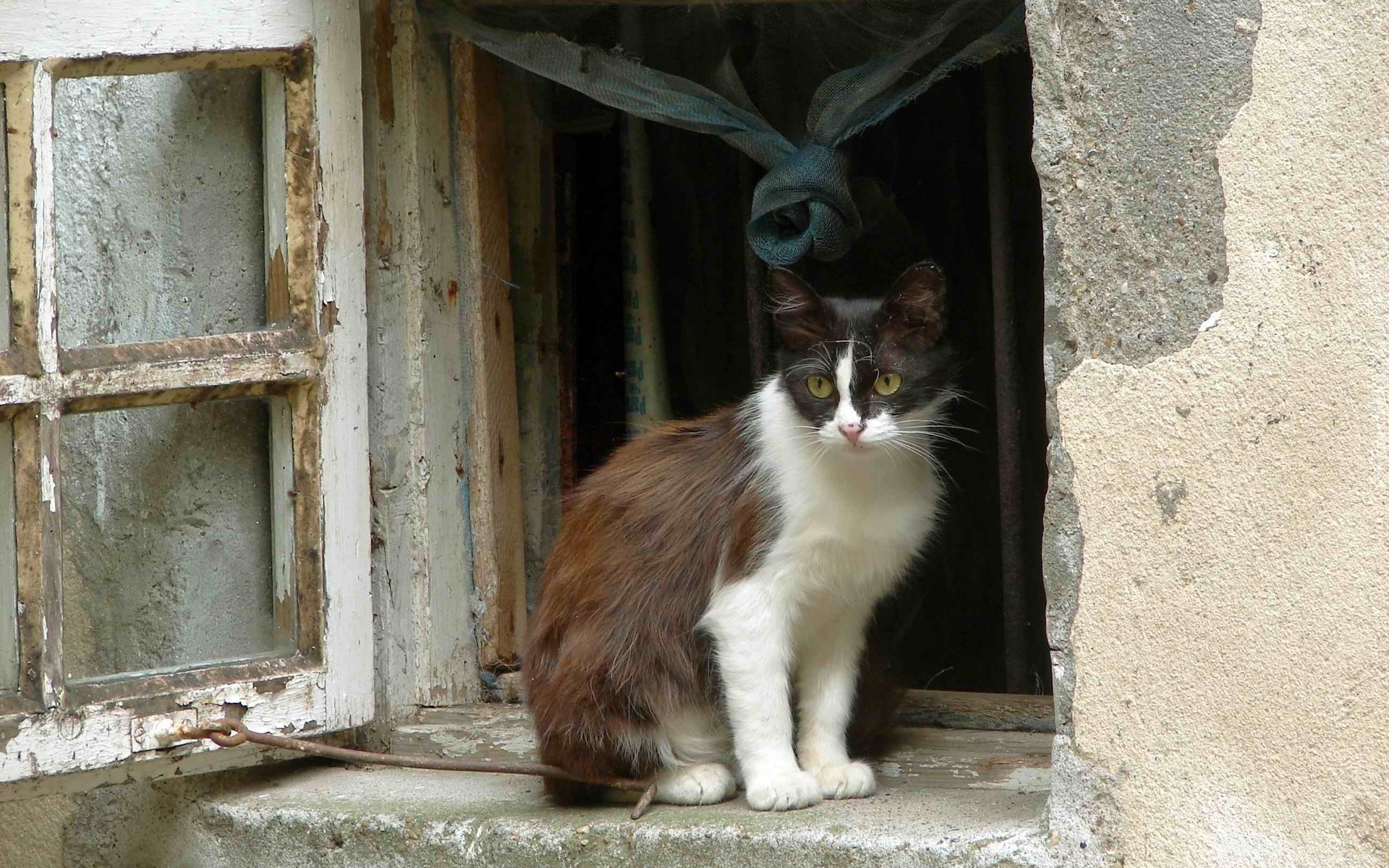 Edytor tapety: Łaciaty, Kot, Okno, Ściany