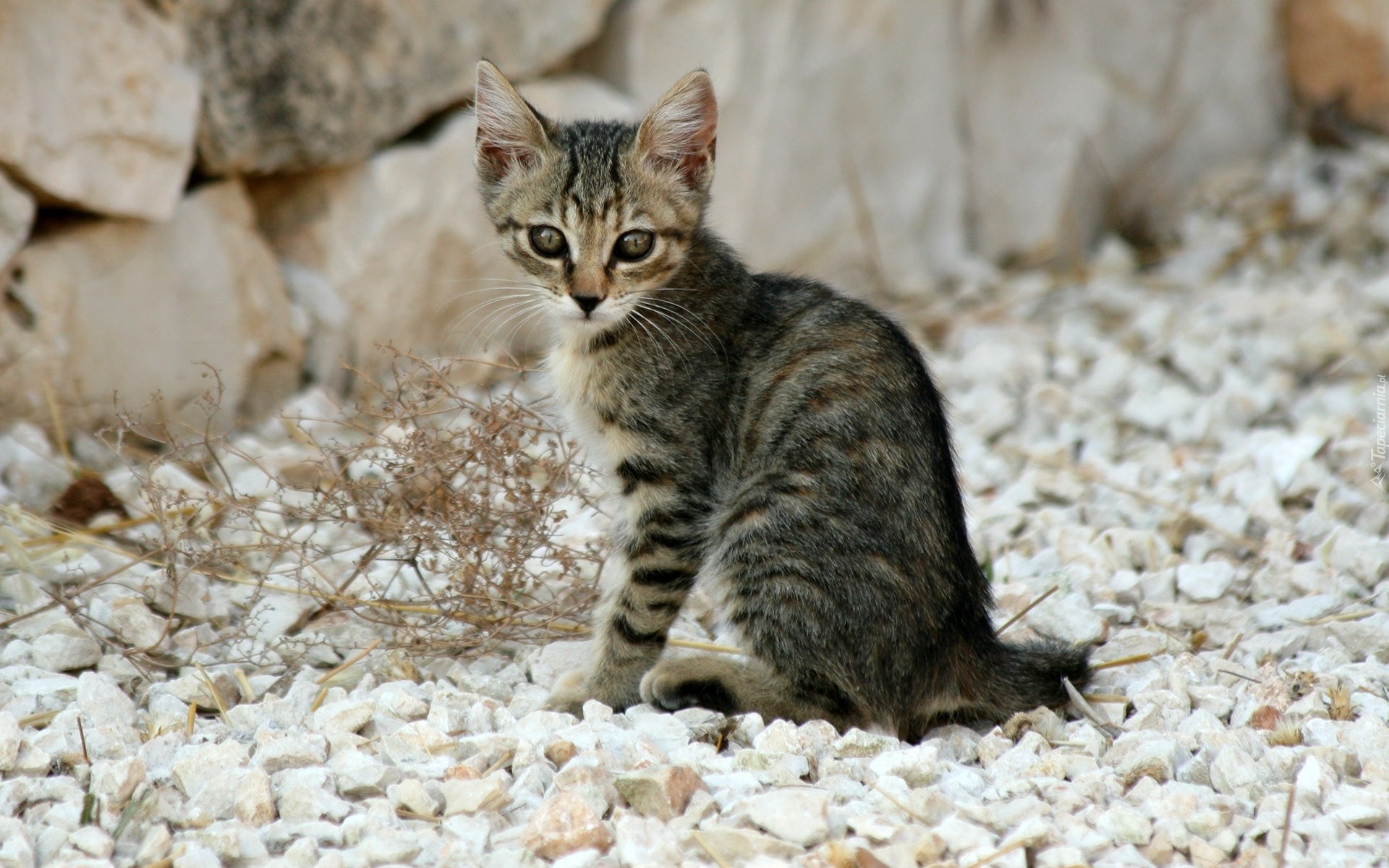 Edytor tapety: Mały, Bury, Kotek, Kamyki
