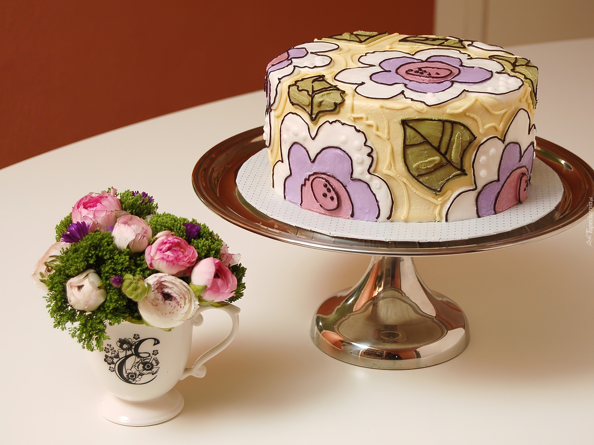 Edytor tapety: Udekorowany, Tort, Bukiecik, Kwiatków