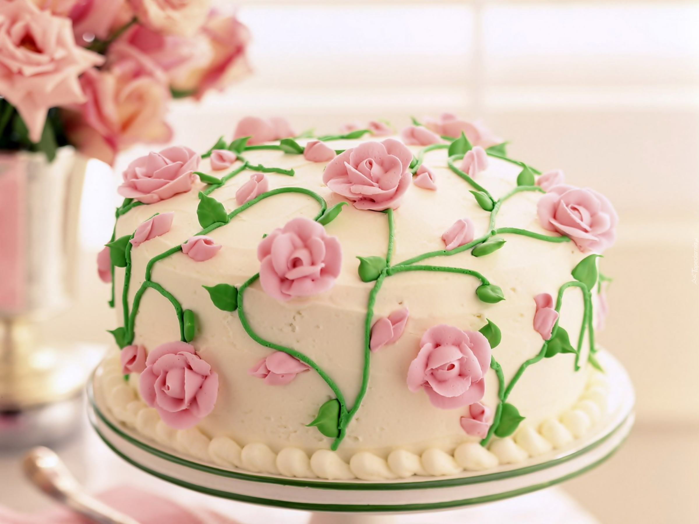 Edytor tapety: Tort, Dekoracja, Różyczki