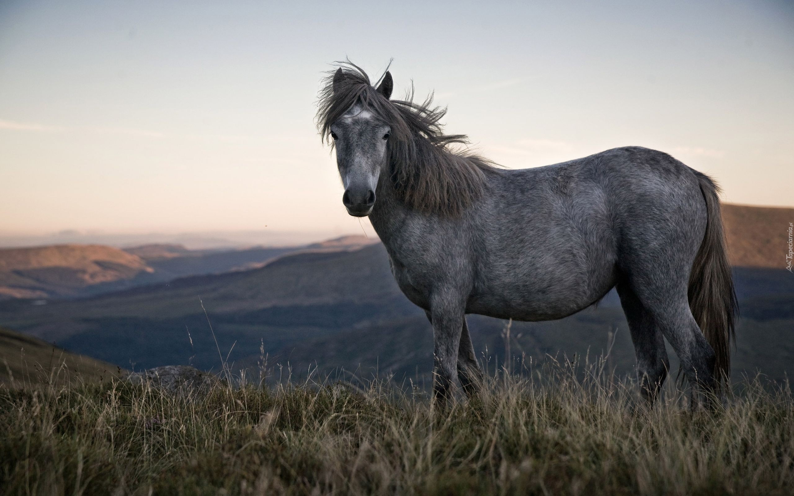 Edytor tapety: Szary, Koń, Grzywa, Łąka