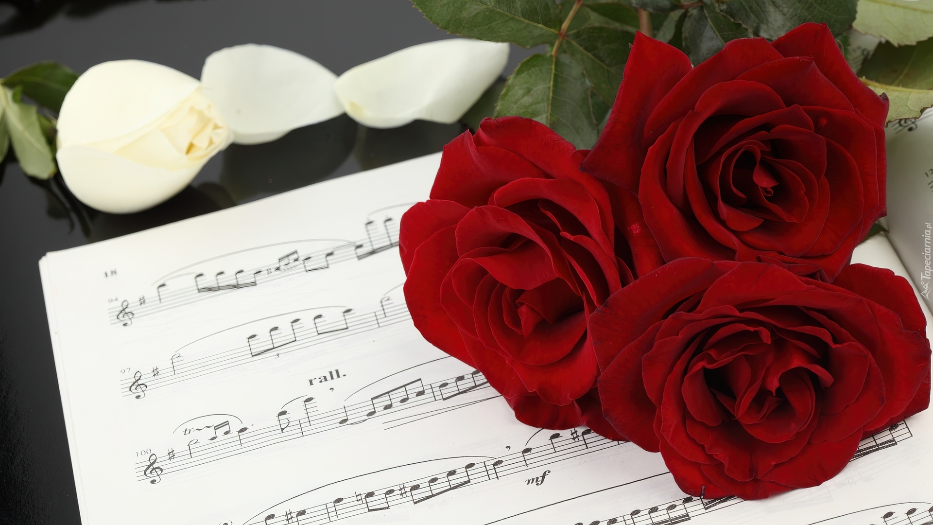 Edytor tapety: Czerwone, Róże, Nuty