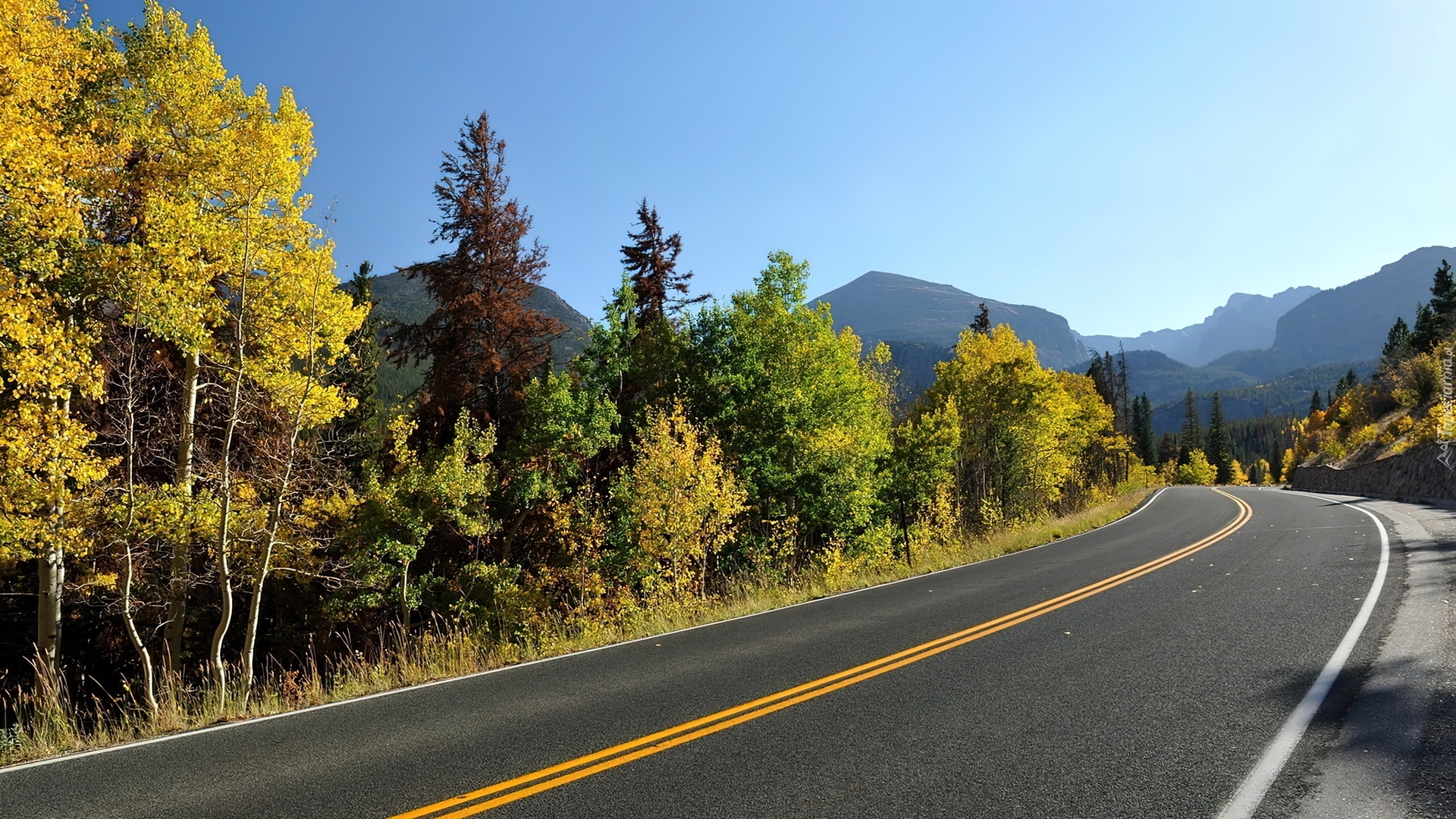 Edytor tapety: Droga, Asfalt, Jesienne, Drzewa