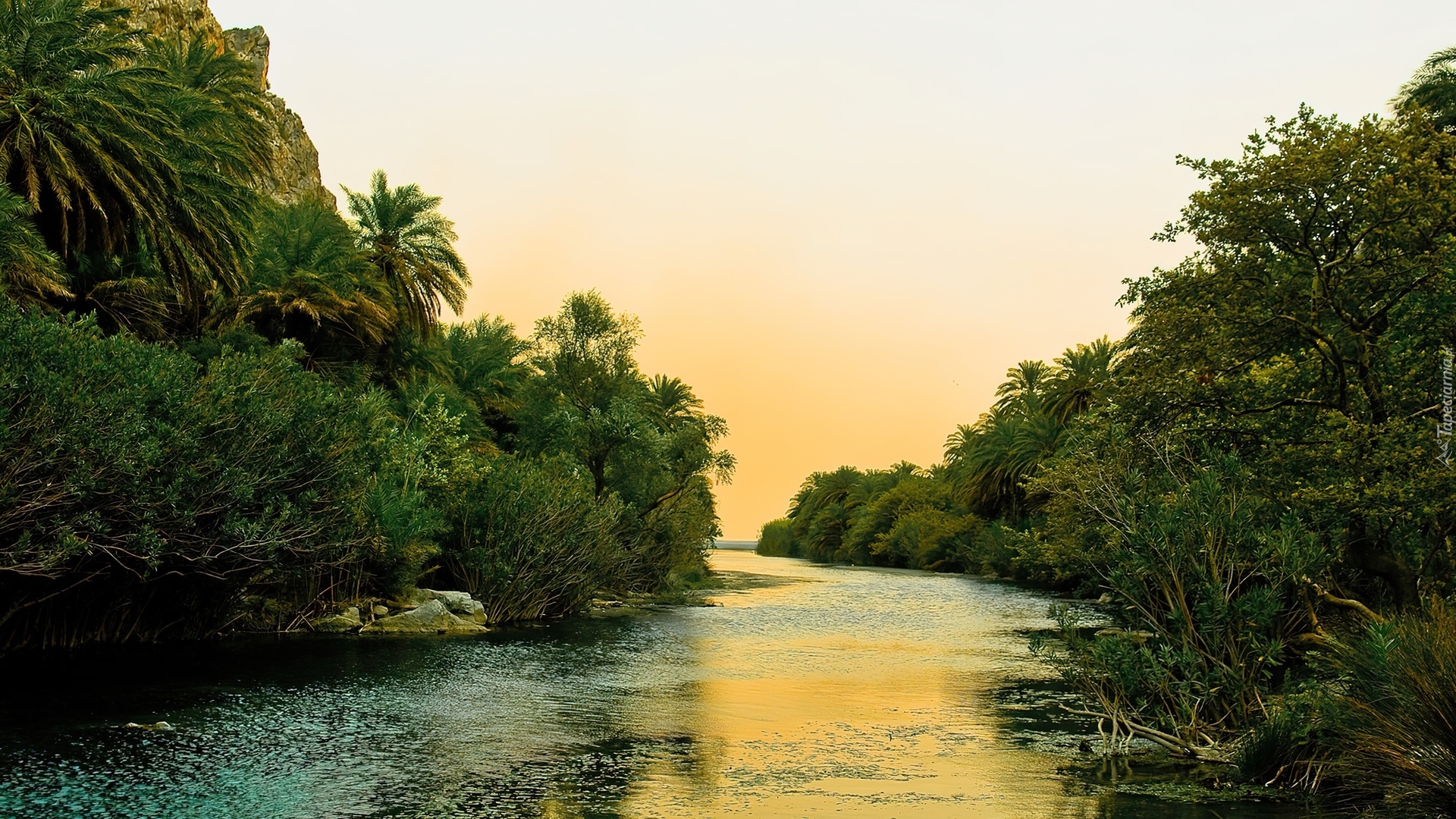 Edytor tapety: Rzeka, Palmy, Zarośla