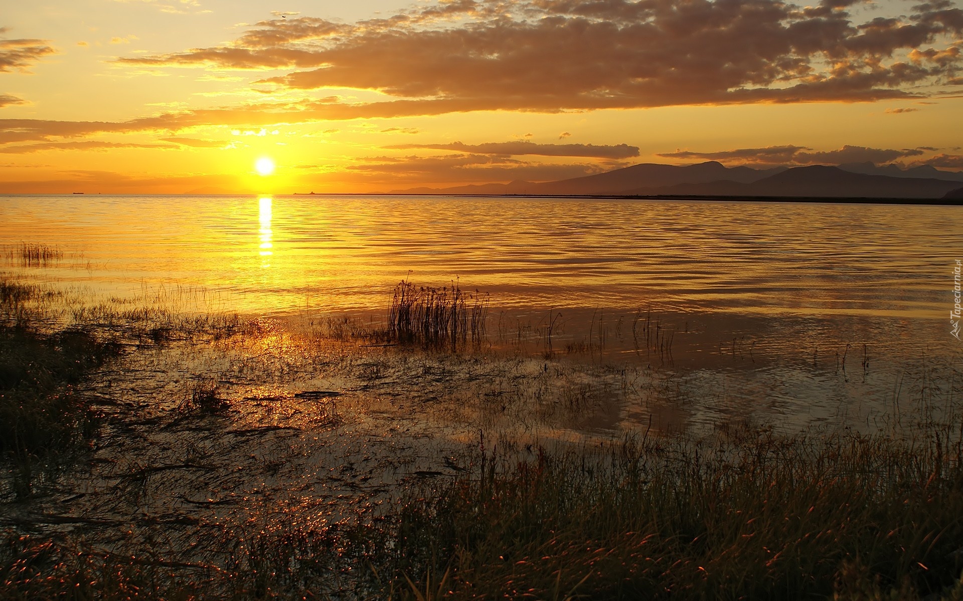 Edytor tapety: Jezioro, Zachód, Słońca