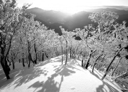 Edytor tapety: Zima, Góry, Ośnieżone, Drzewa