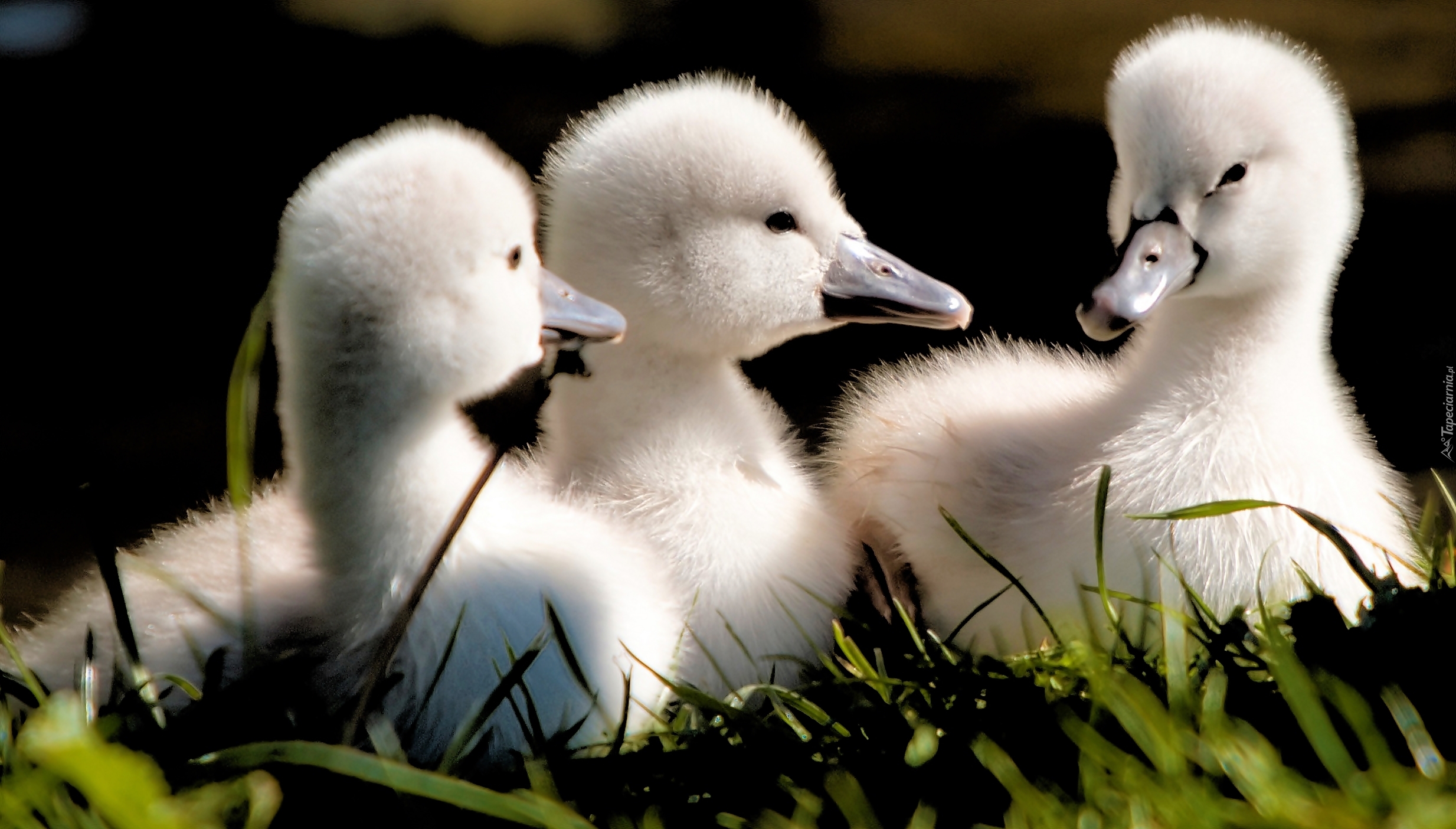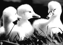 Edytor tapety: Trzy, Młode, Łabędzie, Trawa