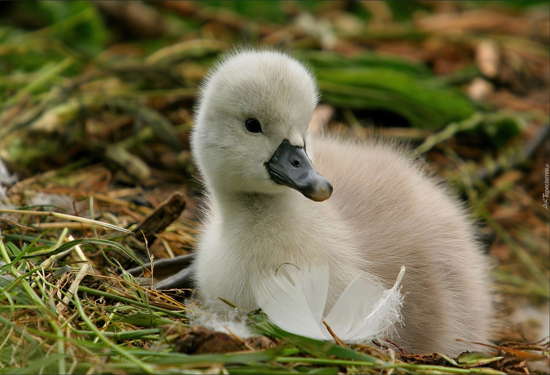 Edytor tapety: Mały, Łabędź, Trawa, Piórko