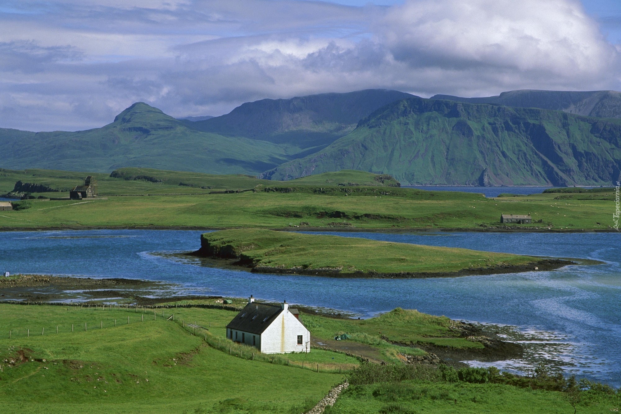 Edytor tapety: Łąki, Domek, Góry, Wybrzeże, Szkocja
