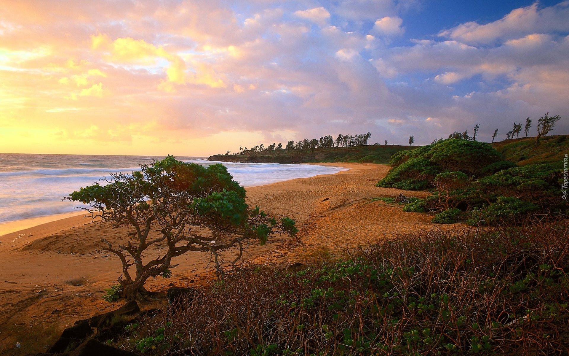 Edytor tapety: Wybrzeże, Zachód, Słońca, Drzewo