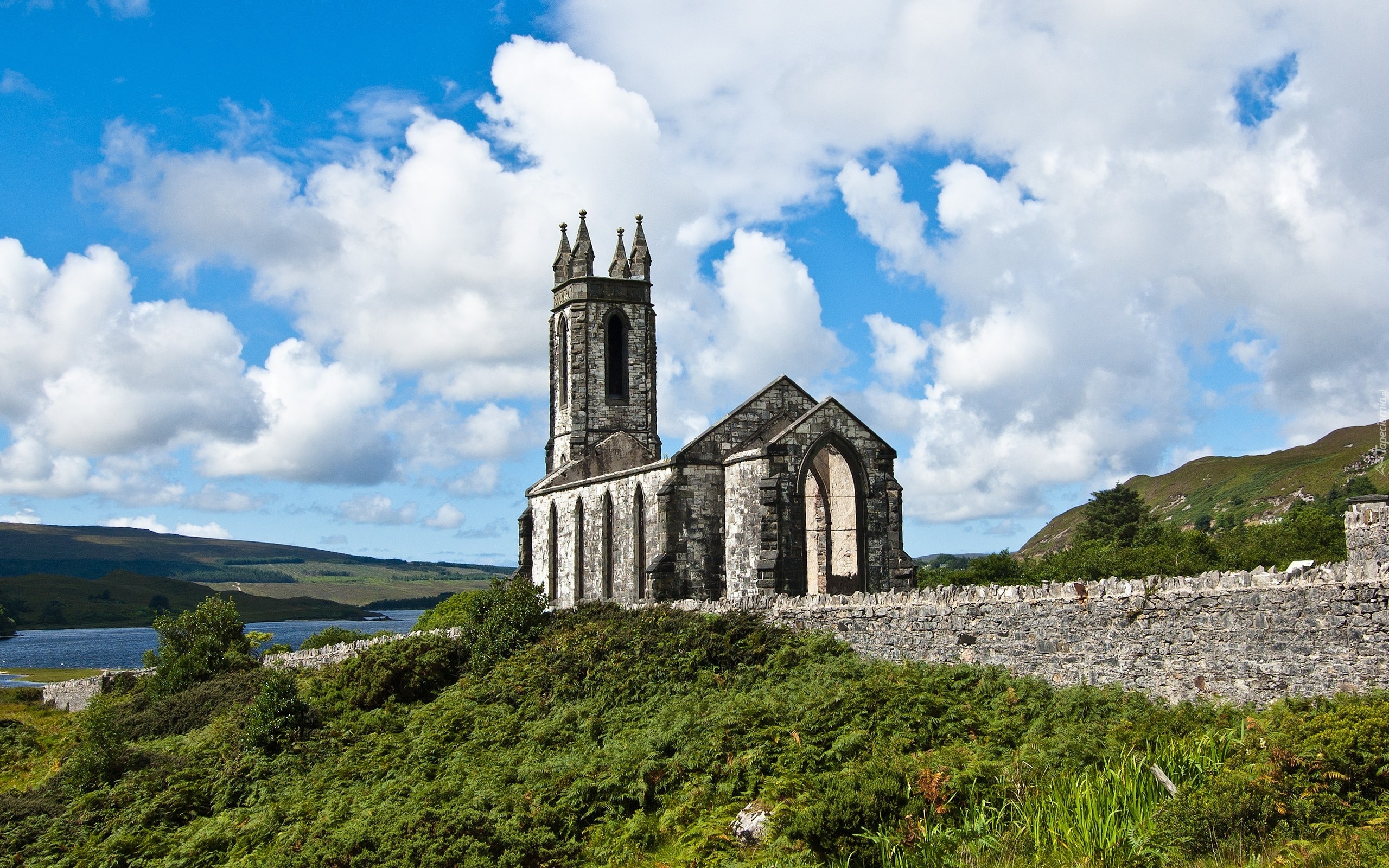 Edytor tapety: Kościół, Białe, Chmury, Irlandia