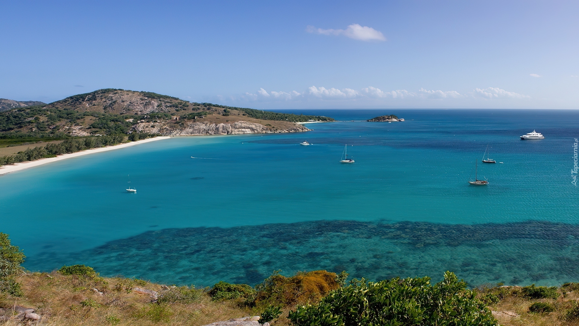Edytor tapety: Wyspa, Morze, Łodzie