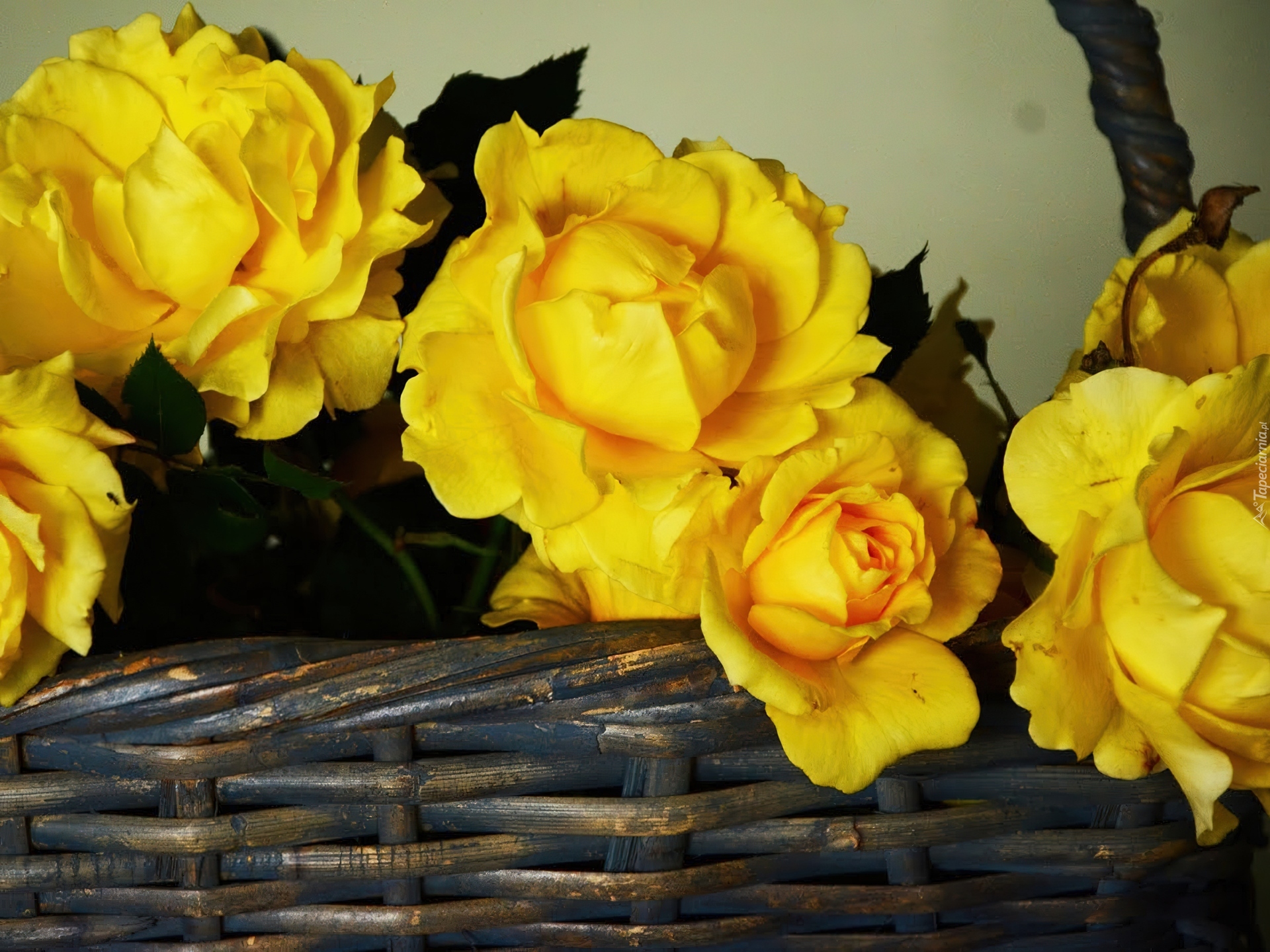 Edytor tapety: Żółte, Róże, Wiklinowy, Koszyk