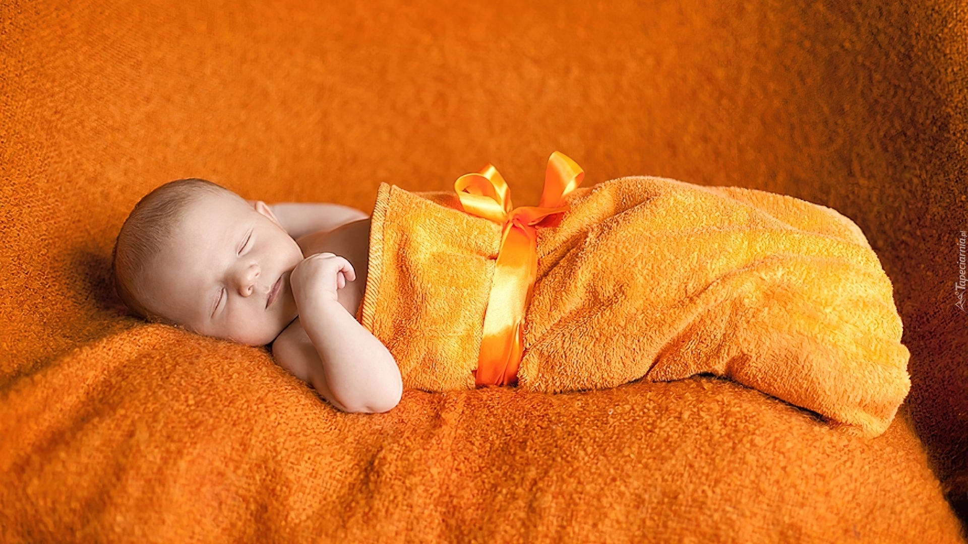 Edytor tapety: Małe, Śpiące, Dziecko, Pomarańczowa, Frotta, Wstążka