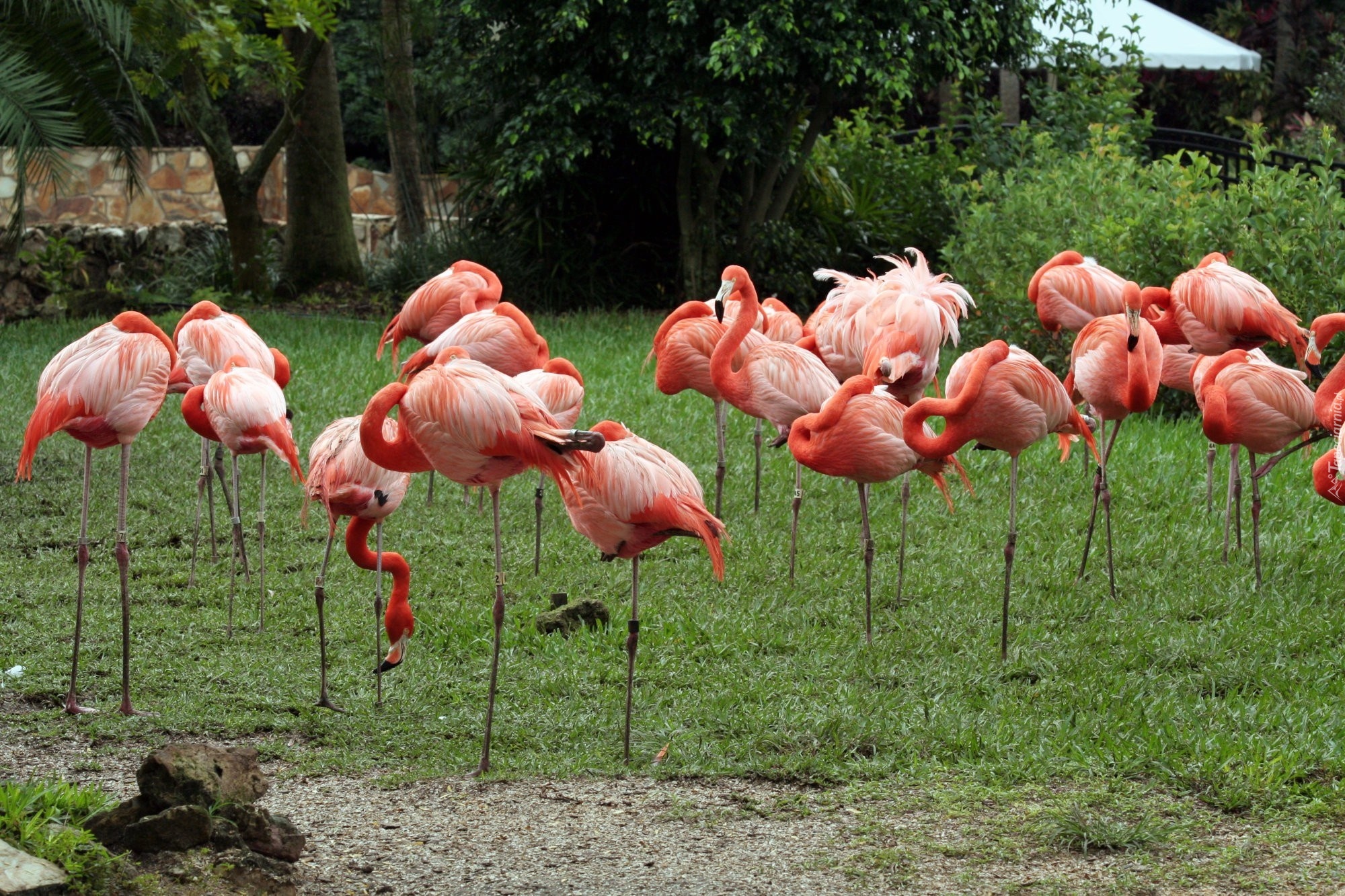 Edytor tapety: Flamingi, Drzewa, Trawa
