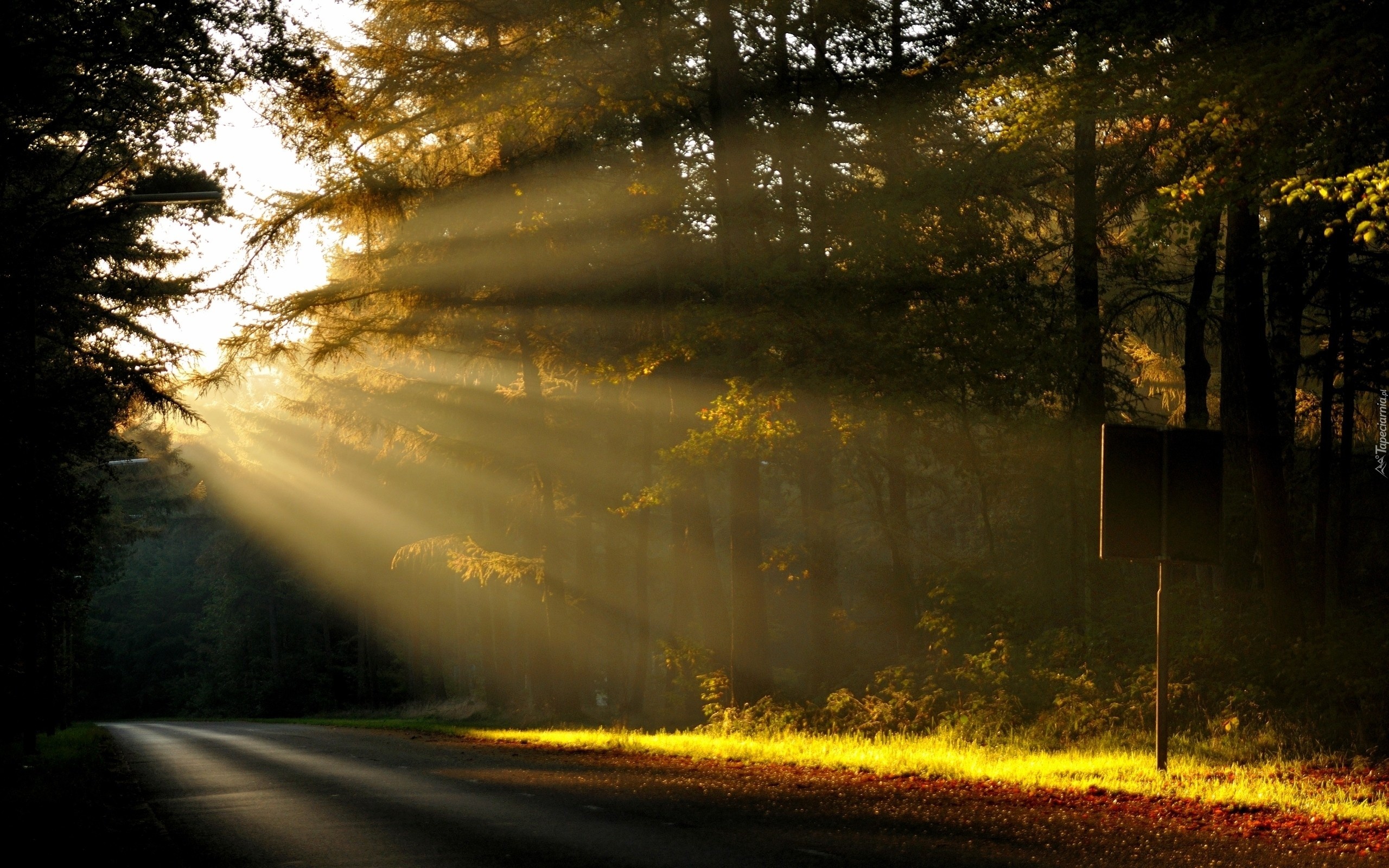 Edytor tapety: Droga, Las, Zachód, Słońca