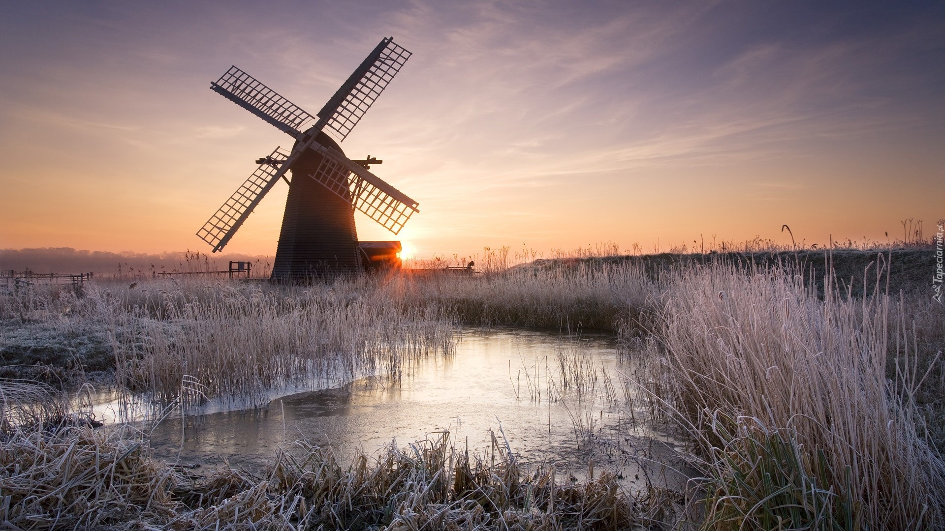 Edytor tapety: Wiatrak, Rzeka, Zachód, Słońca