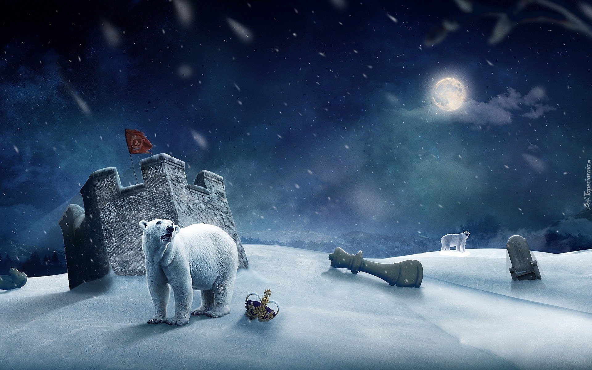 Edytor tapety: Noc, Niedźwiedzie, Polarne, Wieża, Zima