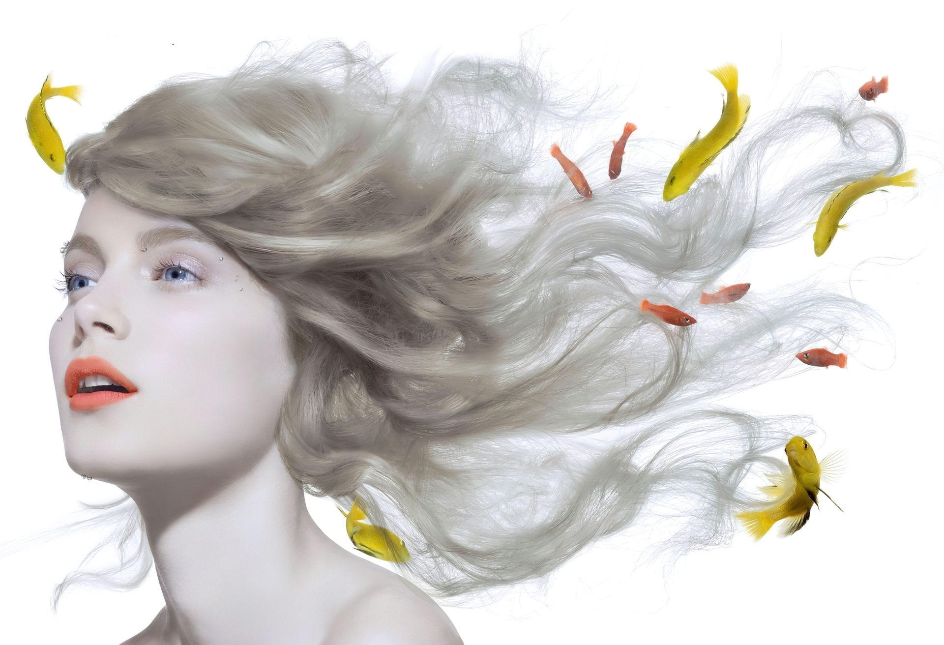 Edytor tapety: Kobieta, Włosy, Rybki