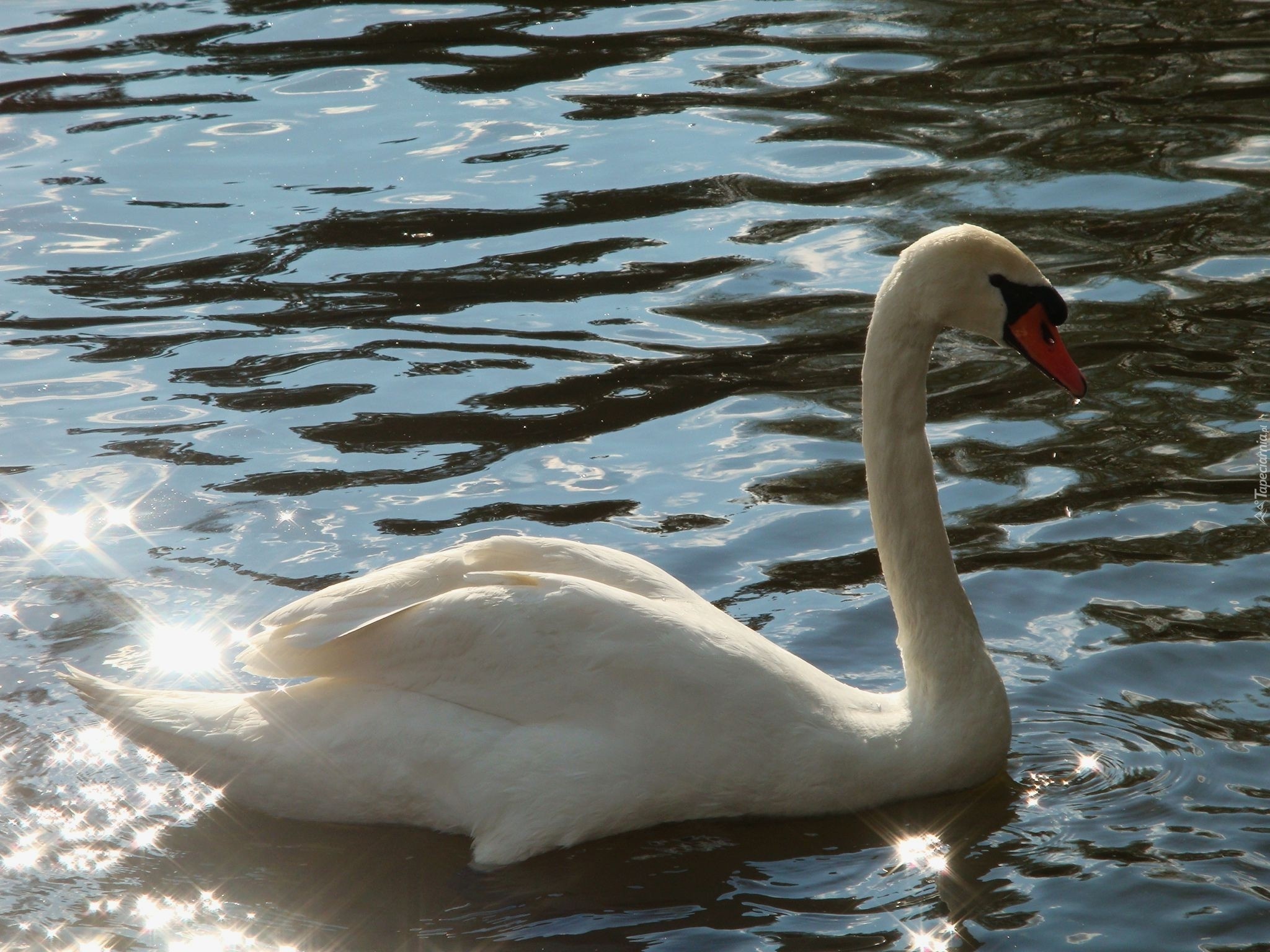 Edytor tapety: Biały, Łabędź, Woda, Refleksy, Światła