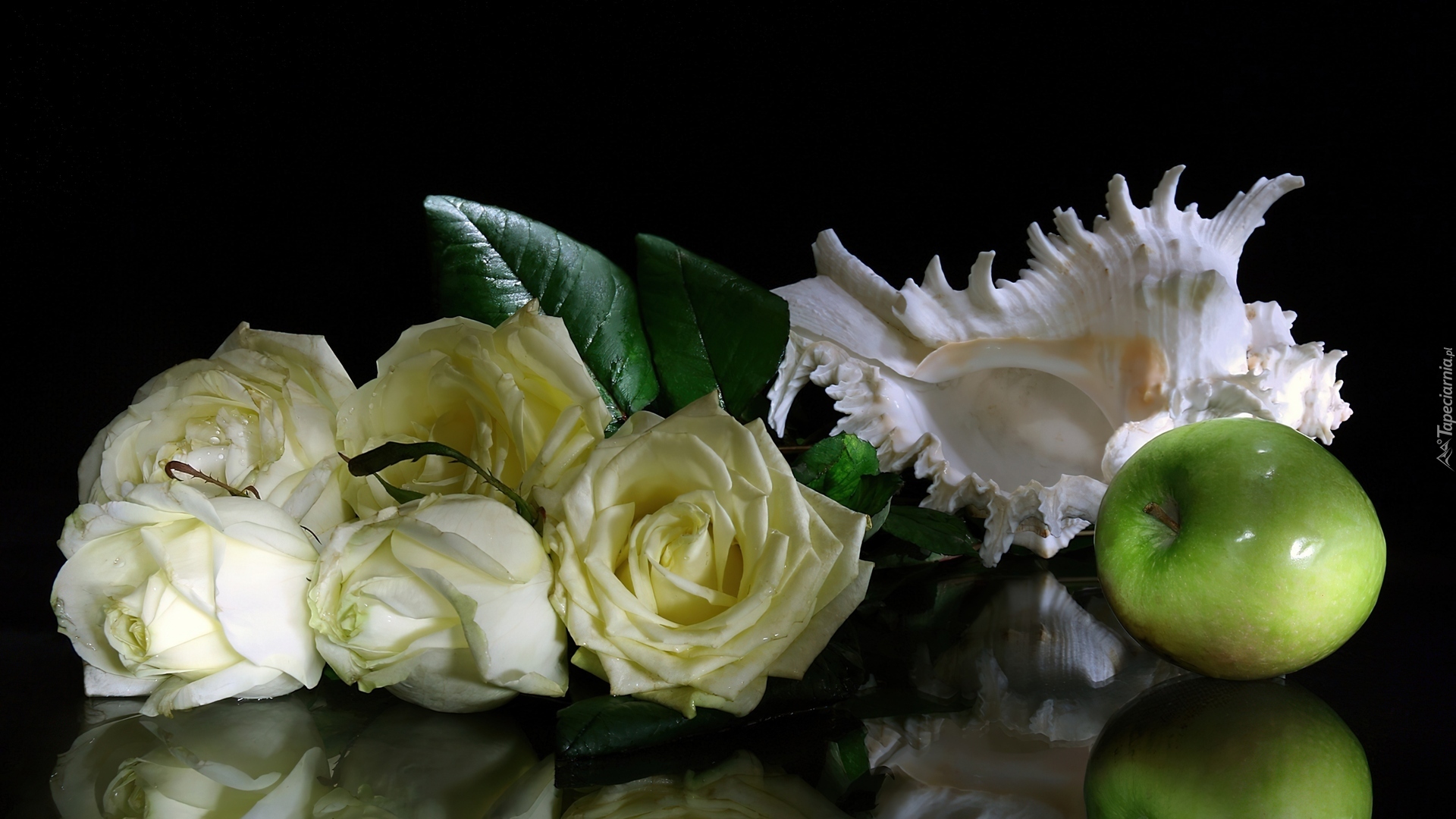 Edytor tapety: Białe, Róże, Zielone, Jabłko, Muszla
