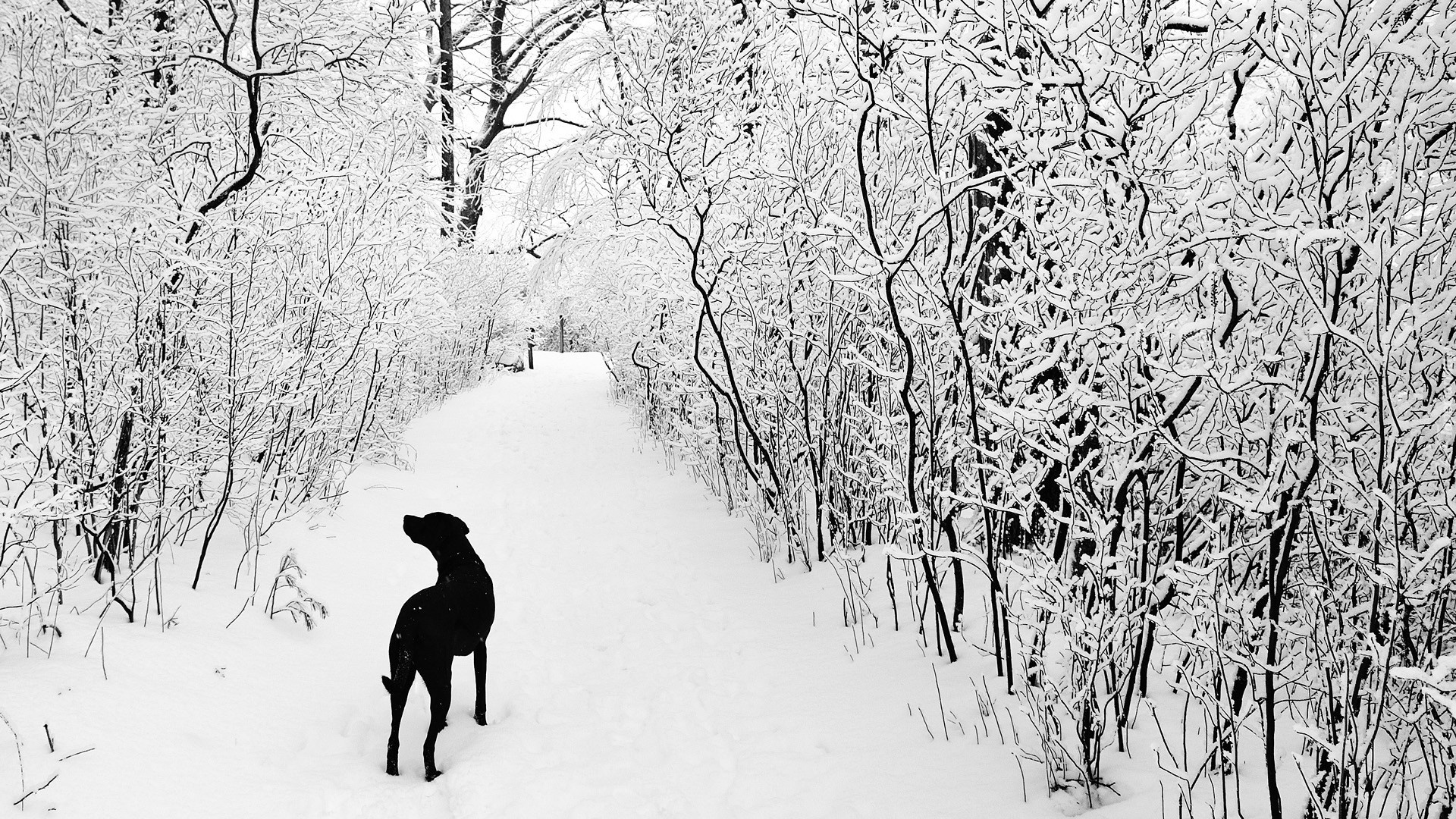 Edytor tapety: Zima, Śnieg, Pies, Las