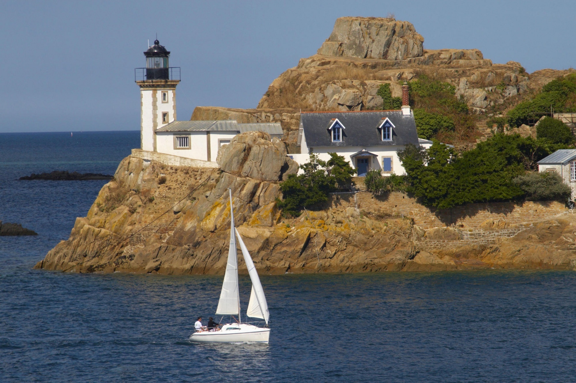 Edytor tapety: Latarnia, Morska, Wybrzeże, Skały, Jacht