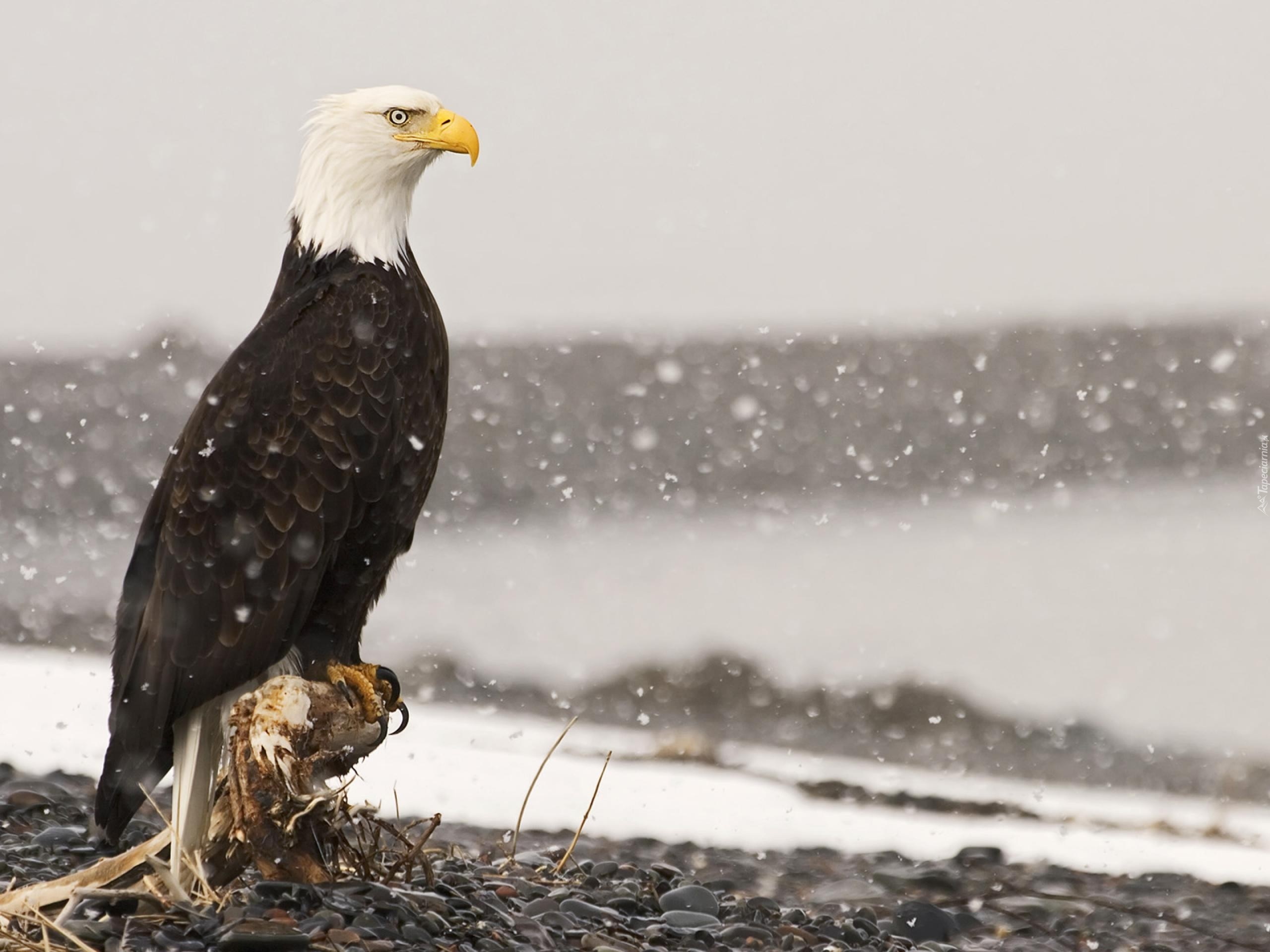 Edytor tapety: Kamyki, Śnieg, Bielik amerykański