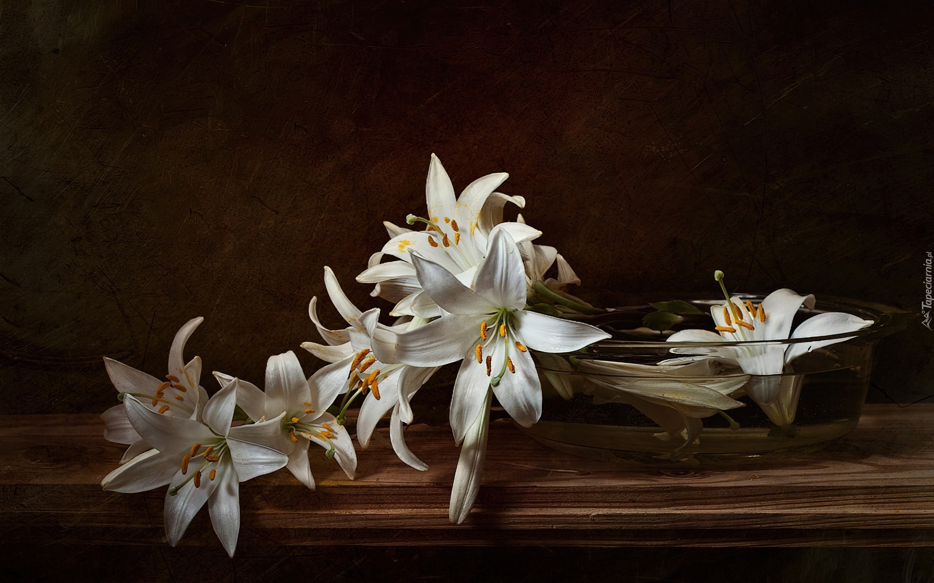 Edytor tapety: Stół, Białe, Lilie