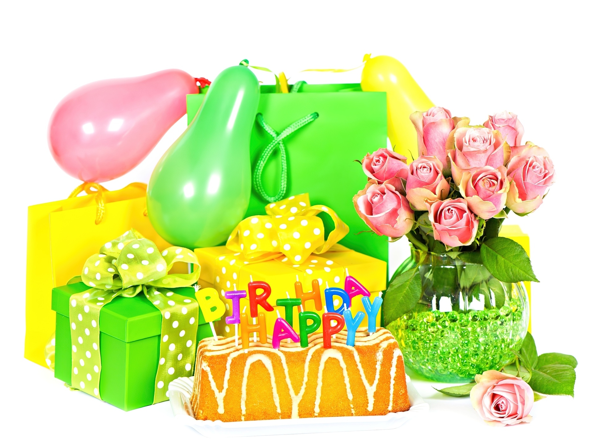 Edytor tapety: Baloniki, Kwiaty, Prezenty, Ciasto