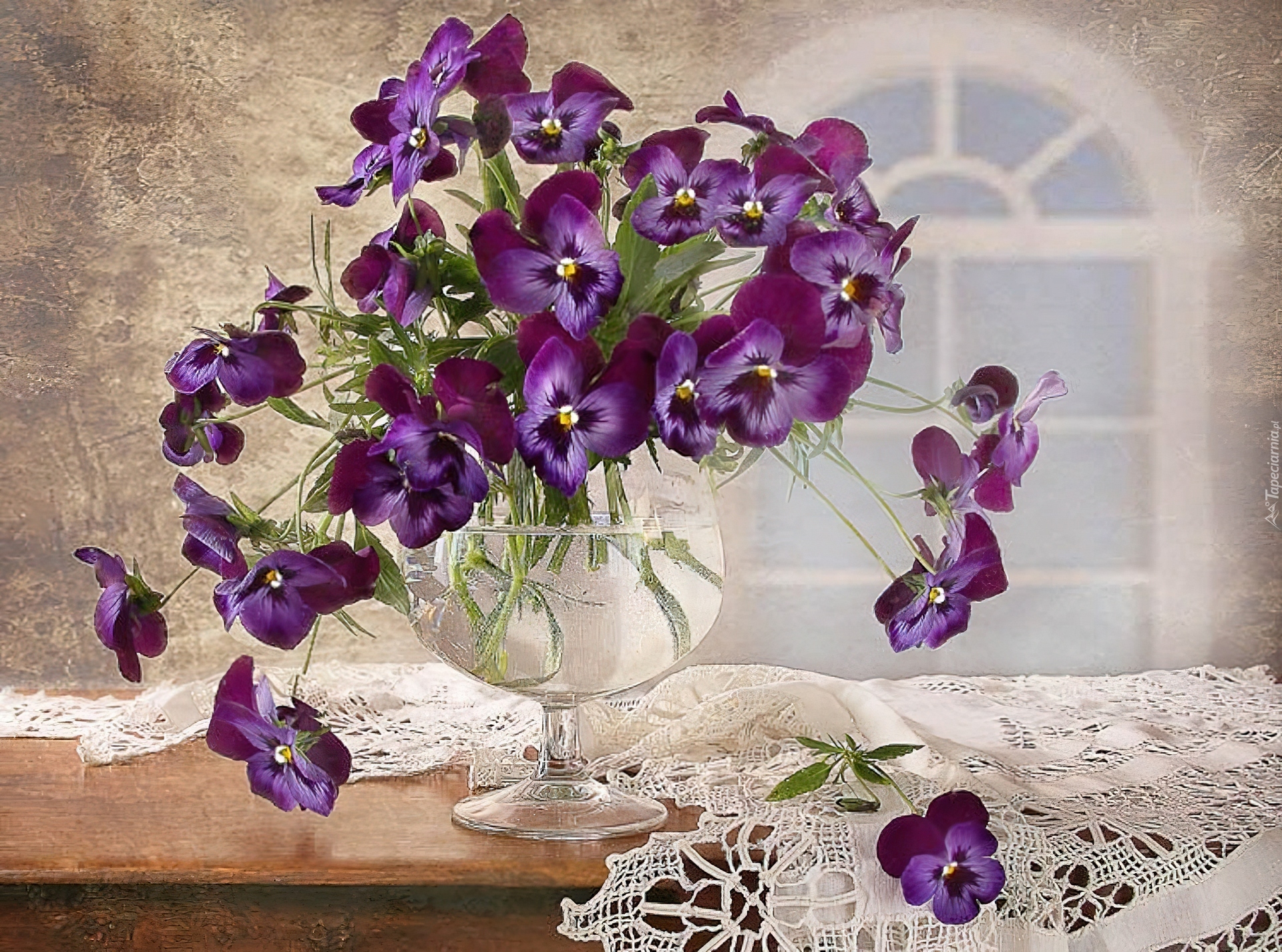 Edytor tapety: Bukiecik, Bratków, Ręcznie, Robiona, Serwetka