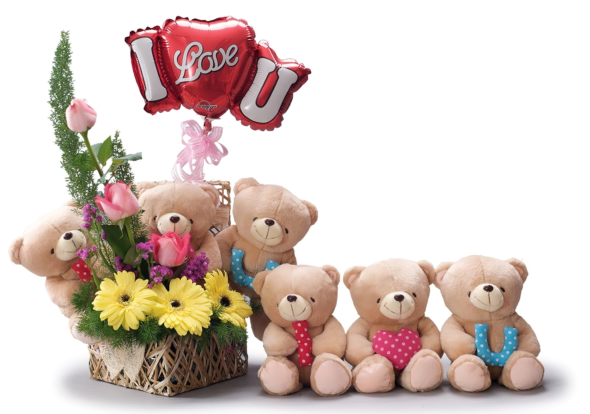 Edytor tapety: Misiaczki, Wyznanie, Miłosne, Kwiaty, Koszyk