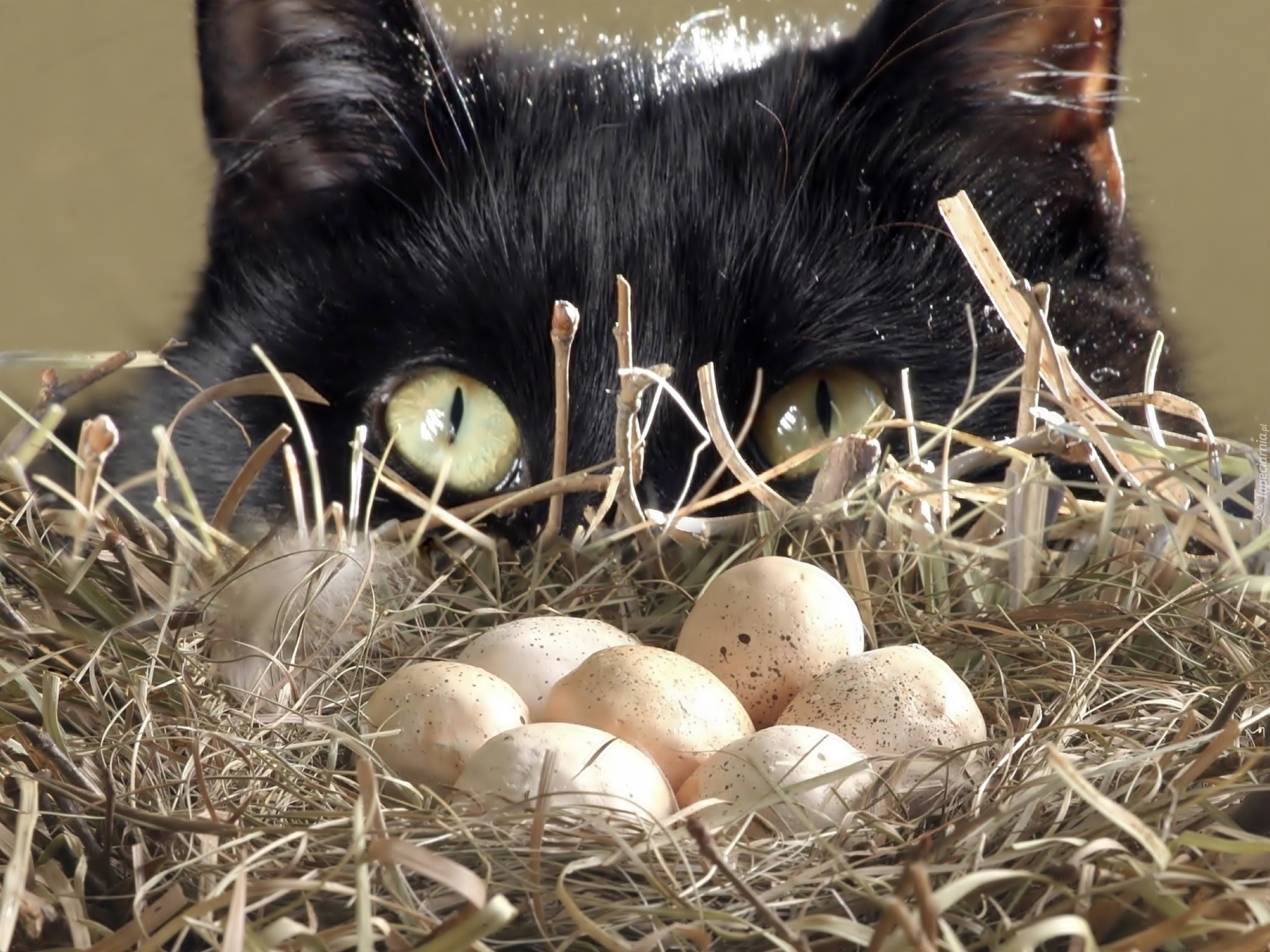 Edytor tapety: Czarny, Kot, Oczy, Gniazdo, Jajka