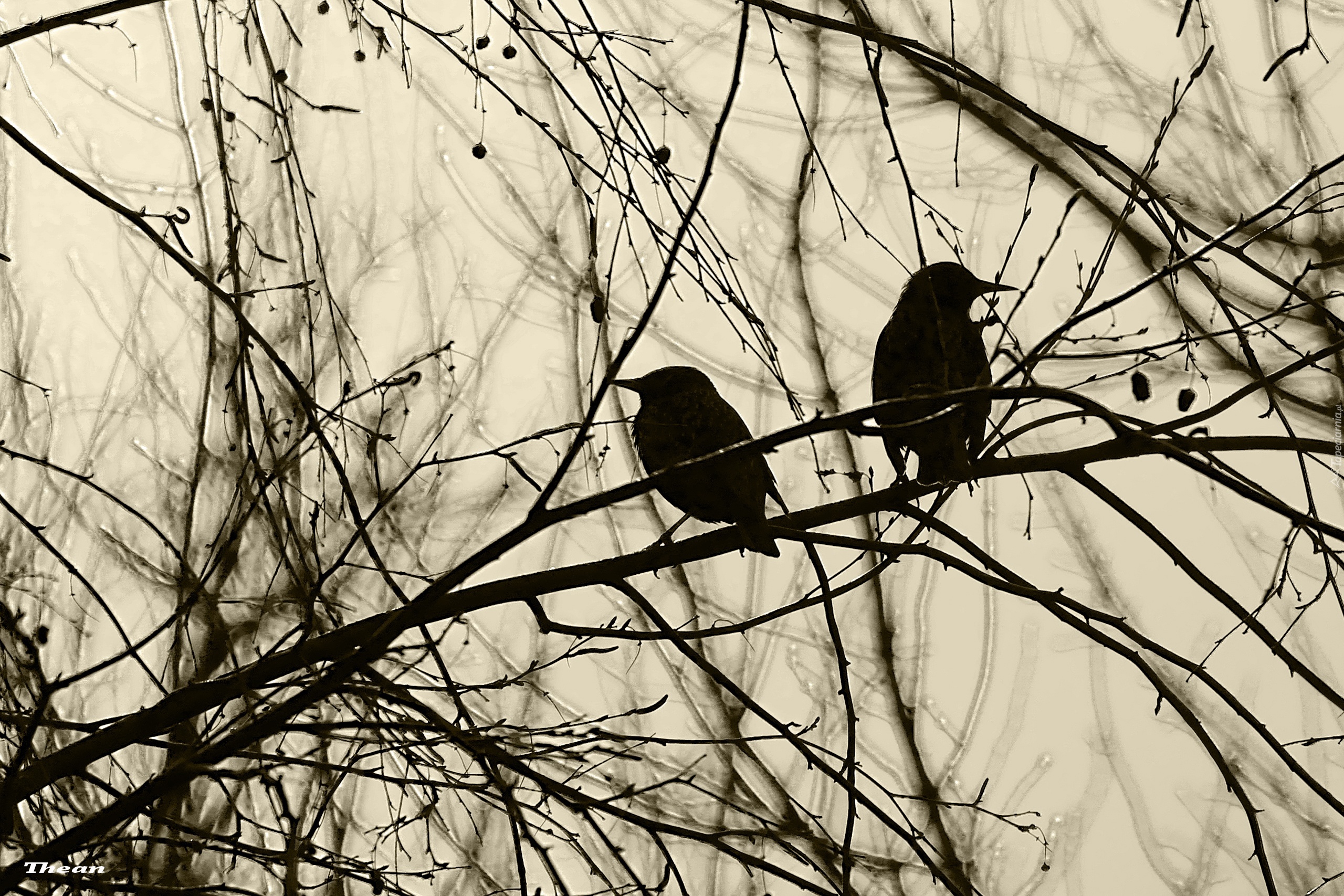 Edytor tapety: Dwa, Szpaki, Na, Gałązce