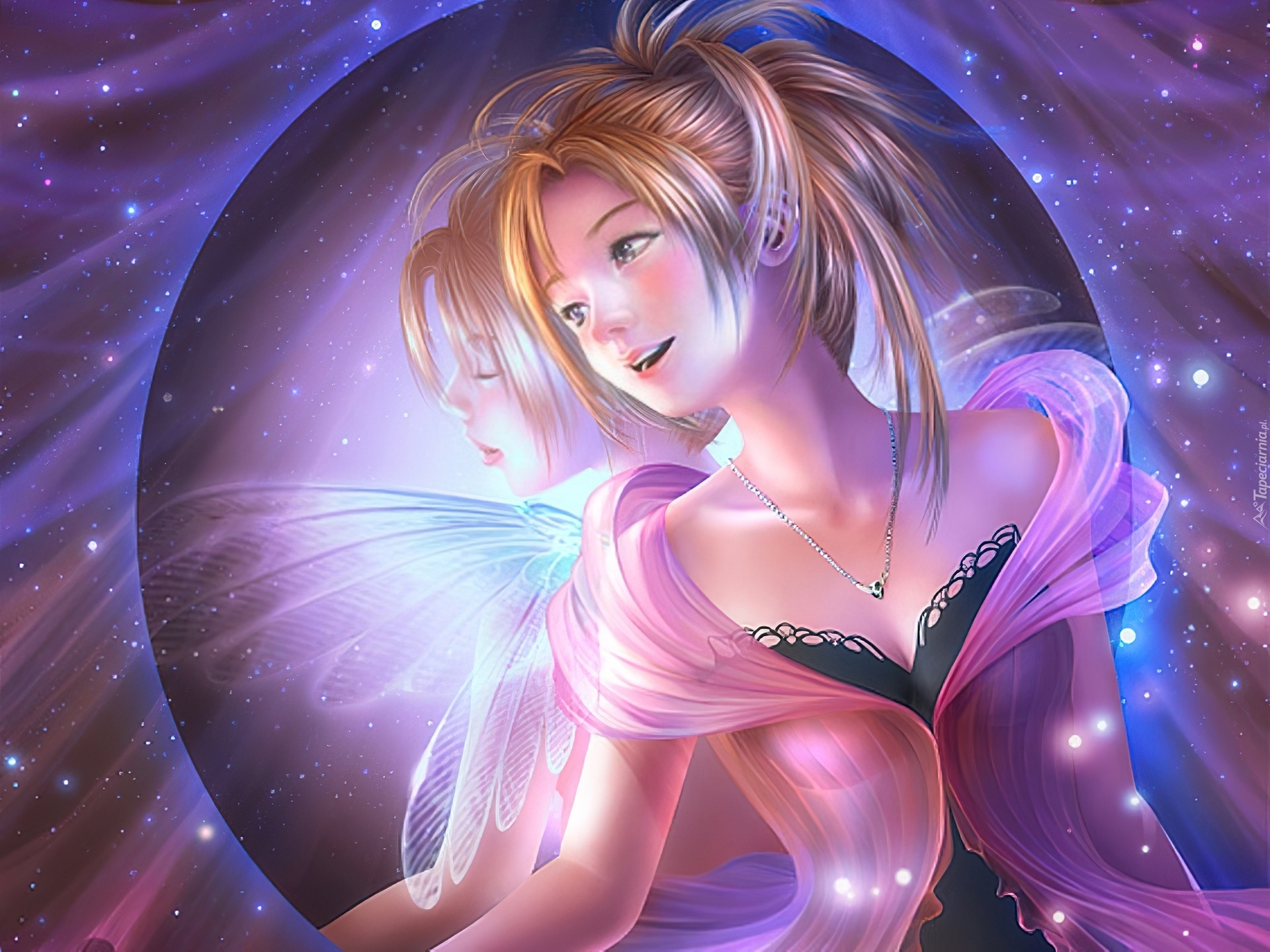 Edytor tapety: Kobieta, Motyl, Naszyjnik, Odbicie